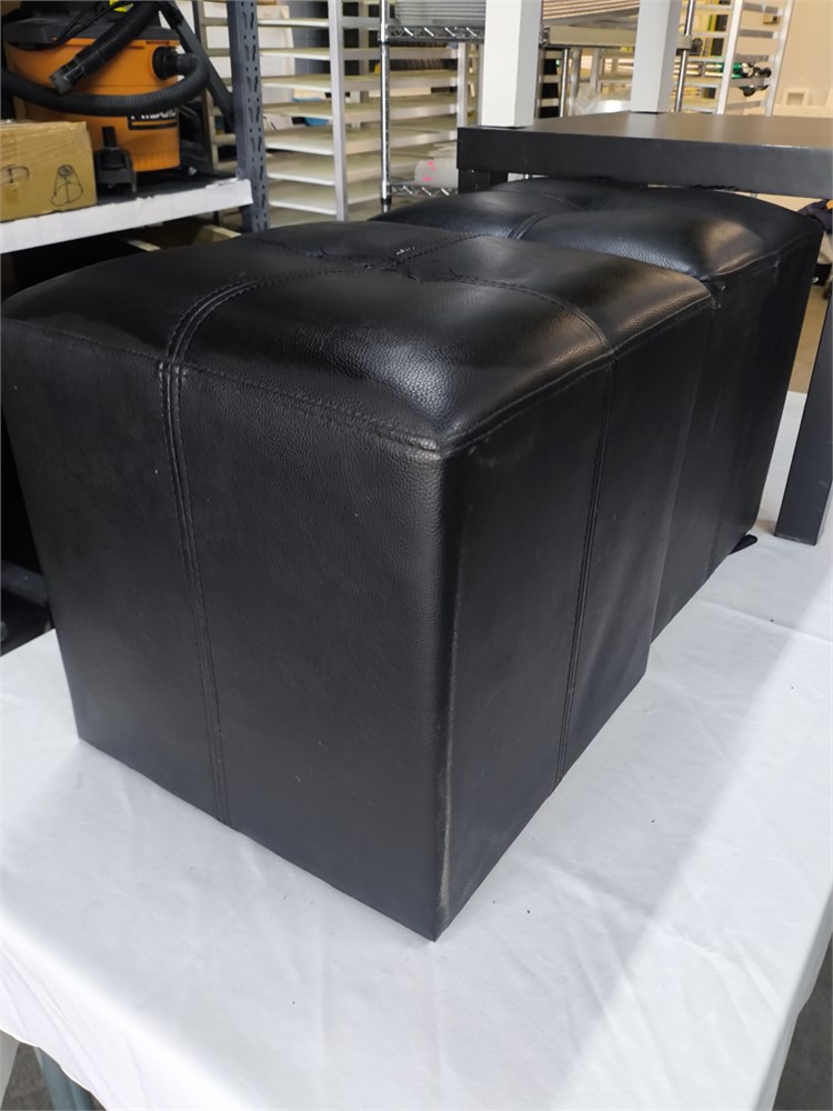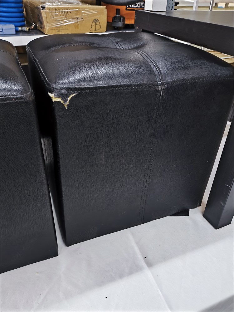 (4) Black Table 18"H x 21" x 21" White Table 17"H x 20" x 20" Ottomans 15"H x 15" x 15"