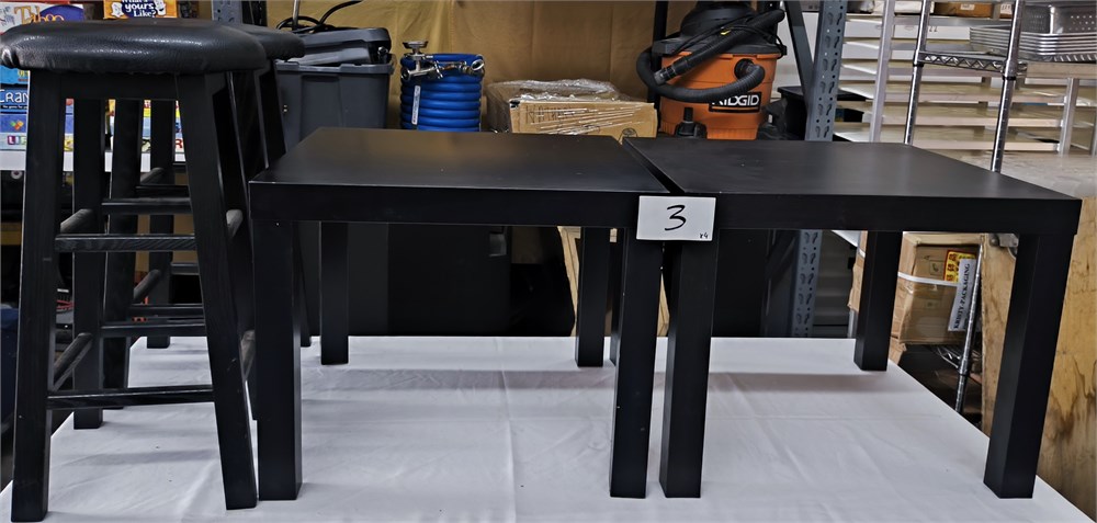 (4) Black Tables 25"H x 21" x 21" Stools 18"H