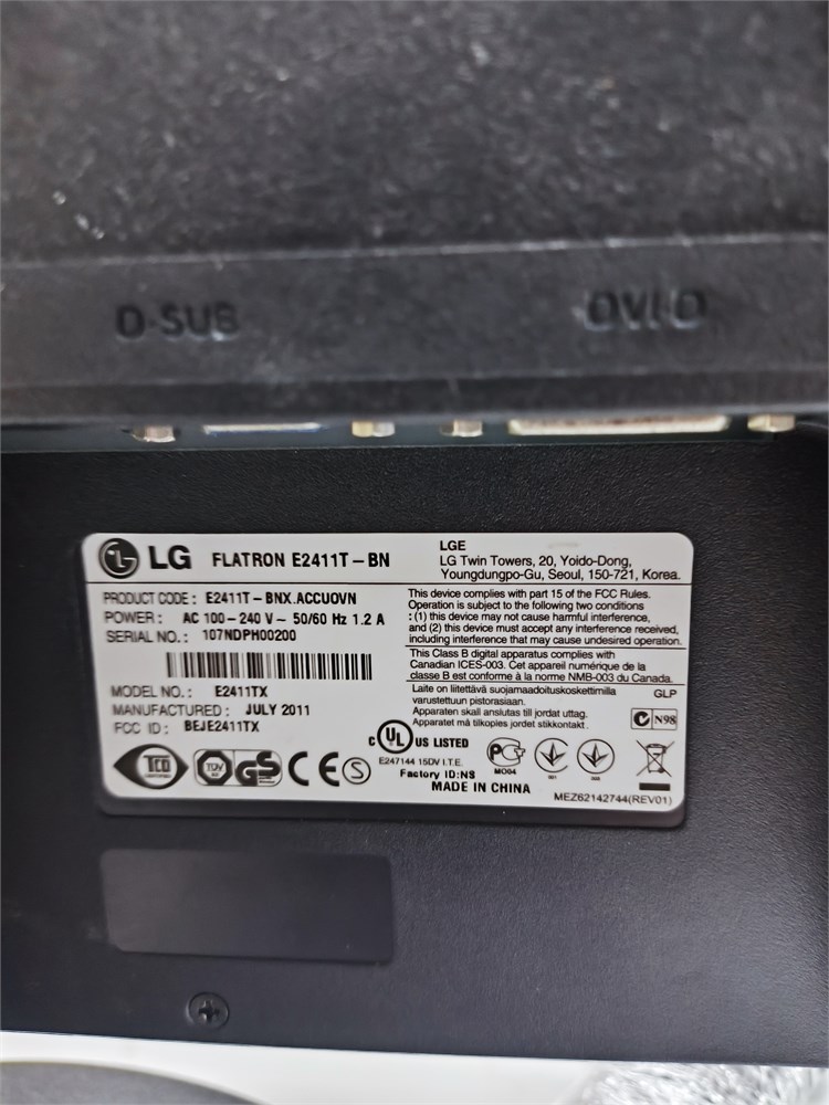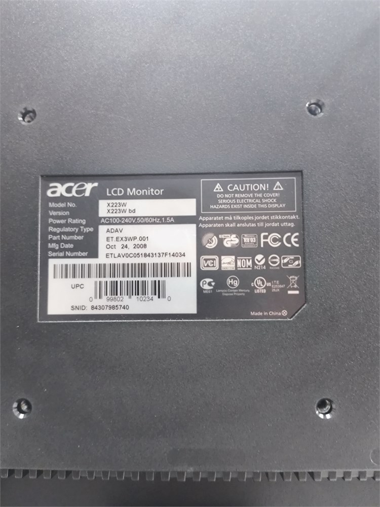 (2) LG Flatron Monitor Model: E2411T-BN & Acer LCD Monitor Model: X223W