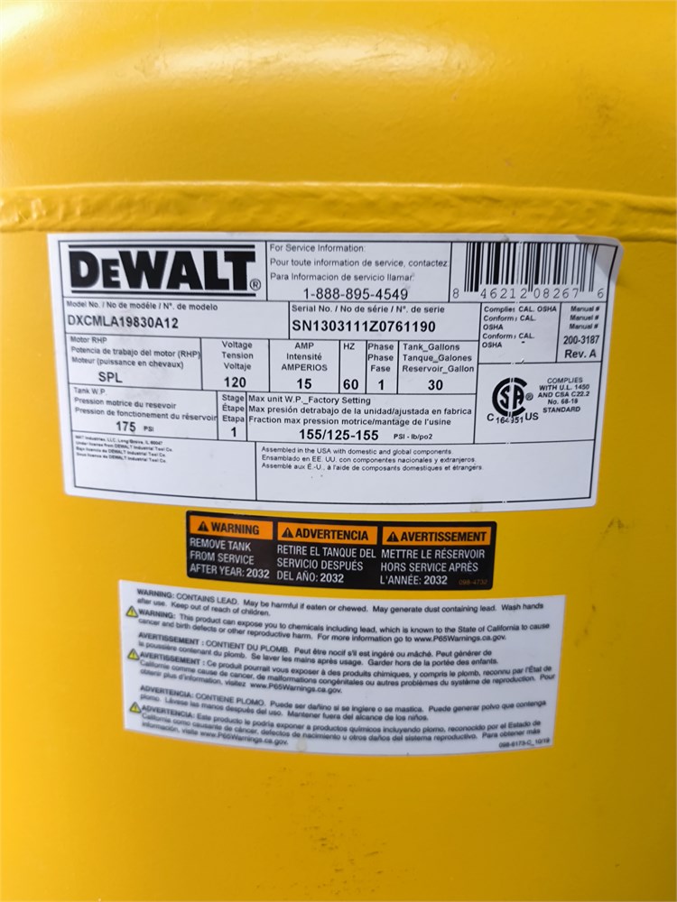 Lot 25 - Dewalt 30 Gallon Air Compressor