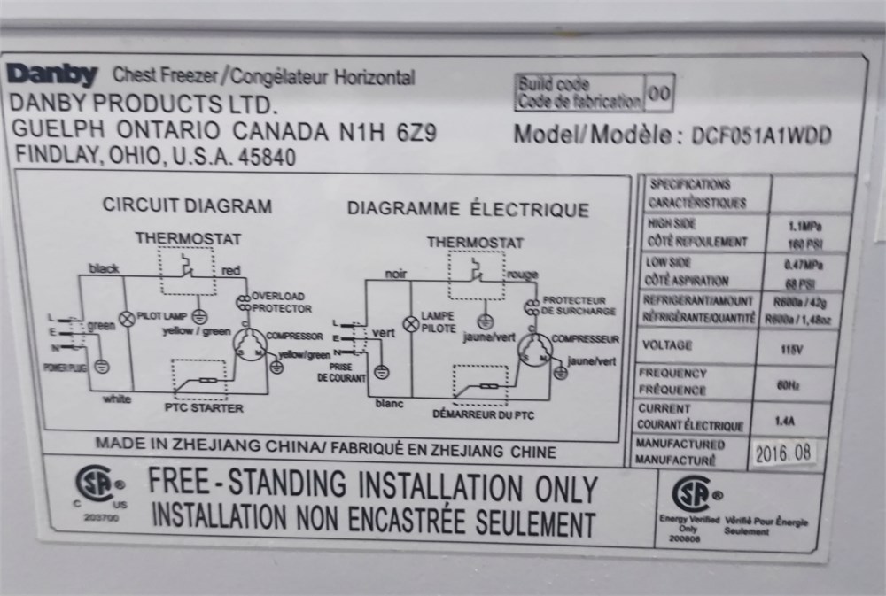 Model: dcf05181wdd 5.1 cu Deep Freezer