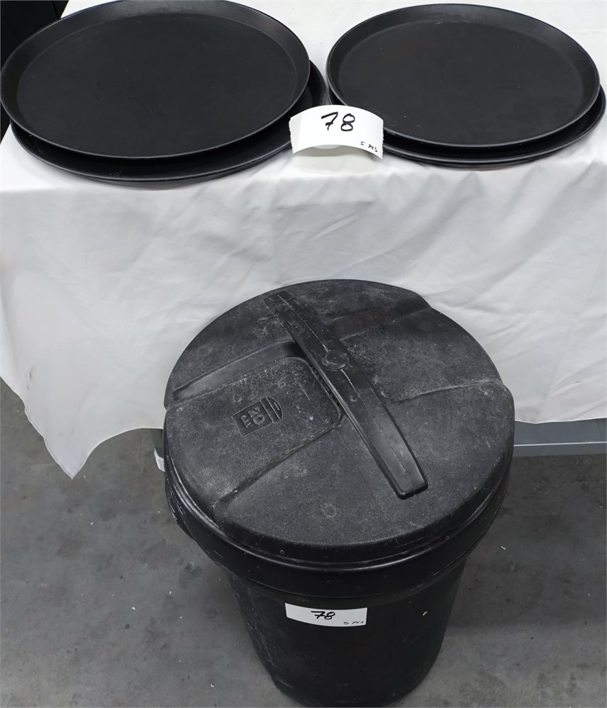 20 Gal Rubbermaid Garbage Can, 2 - 14" Serving trays, 2 - 16" Serving trays