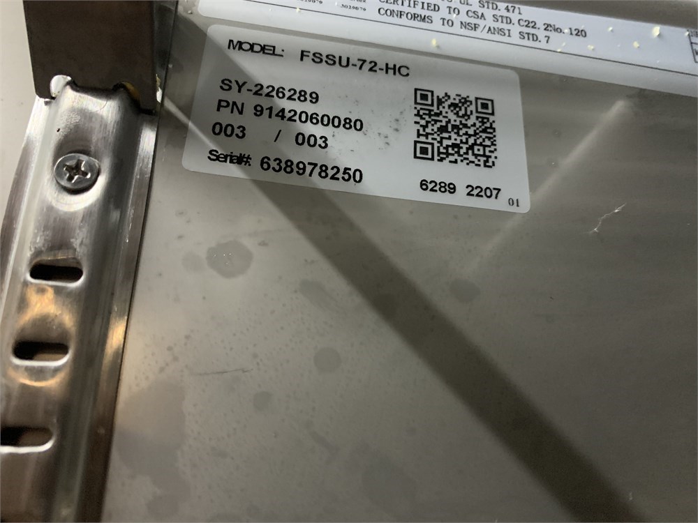 Foster 3-Door Sandwich Prep Cooler with 2 Tier Shelving Model: FSSU-72-HC SN: 638978250