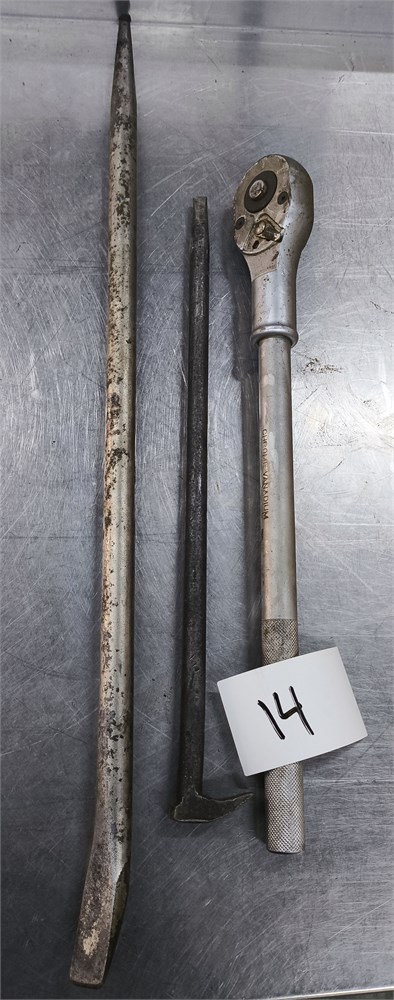 (3) Hand Tools, including two pry bars and a ratchet with a long handle. The ratchet appears to be a vintage Herbrand S-5 1/2" drive model.