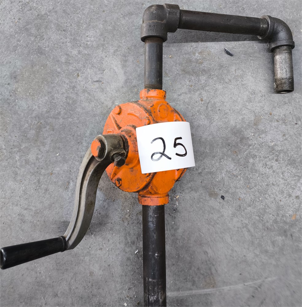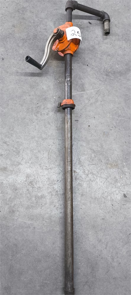Tiger hand rotary barrel pump for transferring liquids from drums.