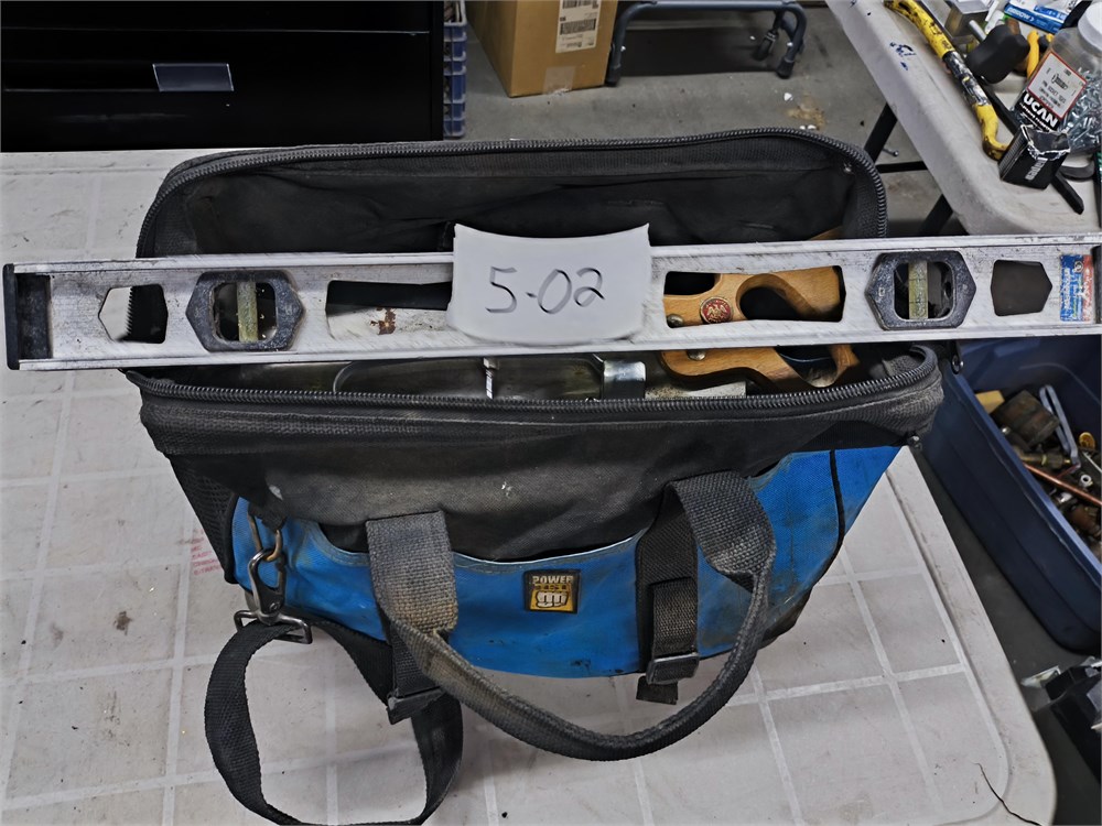 Various Hand tools in a Blue Power Fist Tool Bag, including the Tool bag