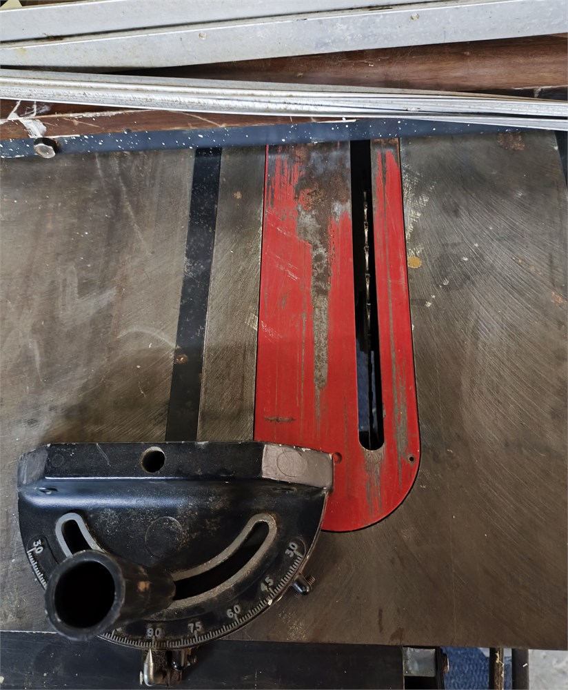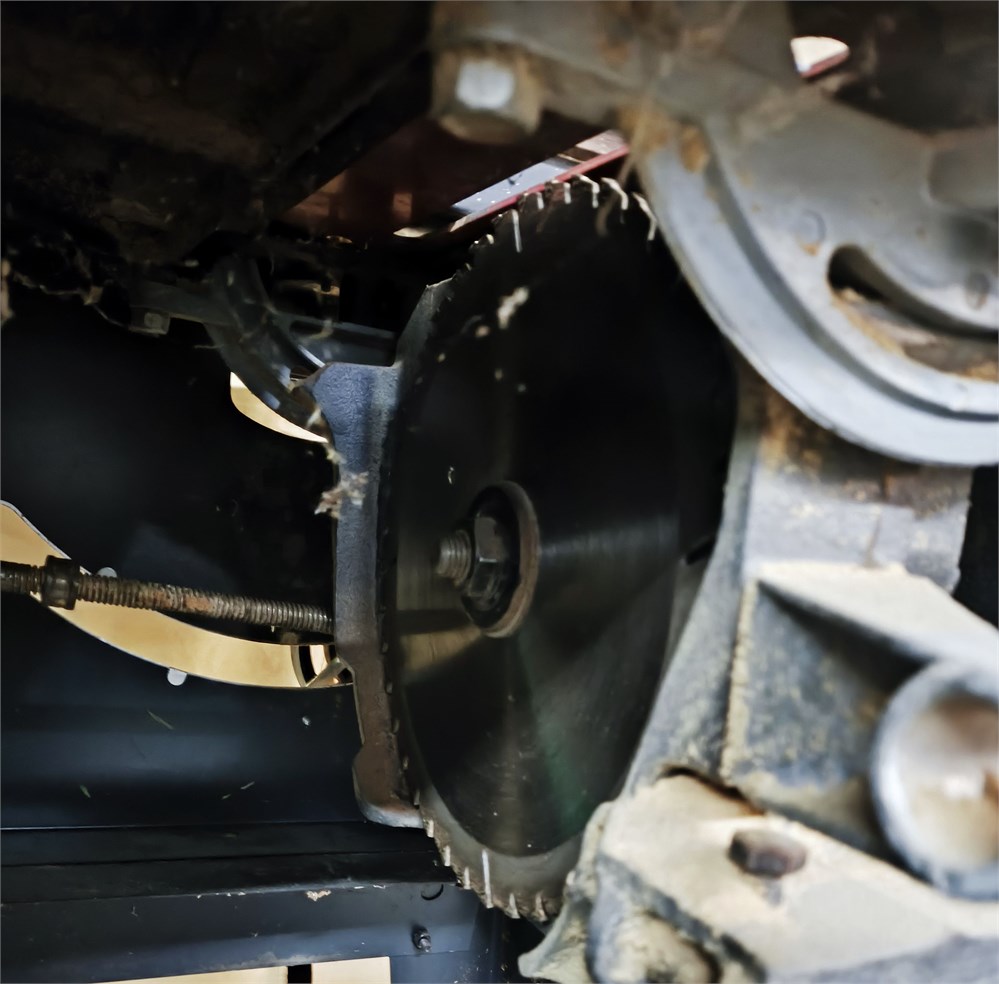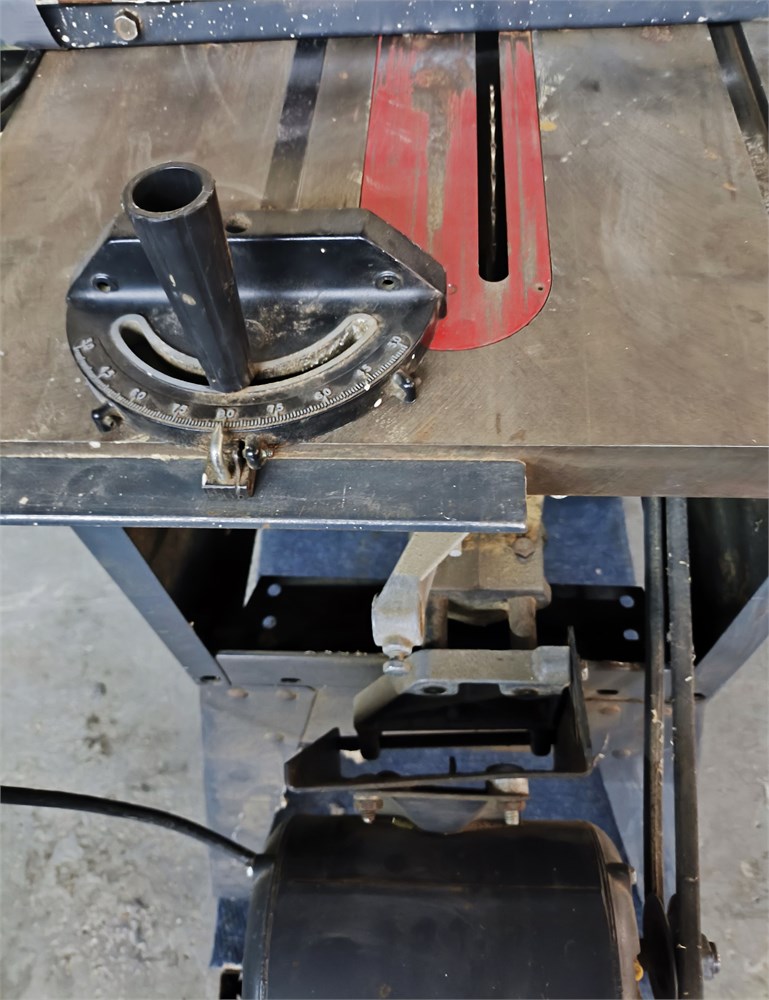 - The saw has a 10-inch blade and is designed for "thru-sawing" with a blade guard.