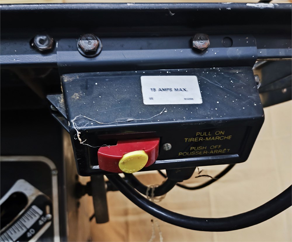 - It is a corded electric saw that operates on 110-120V and is protected by a 15 amp fuse or circuit breaker.