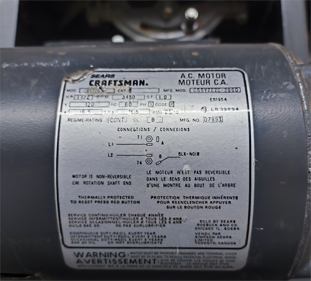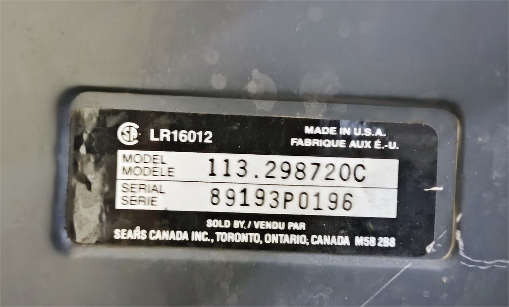 - The model number is 113.298720C, and the serial number is 89193P0196.