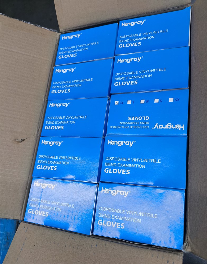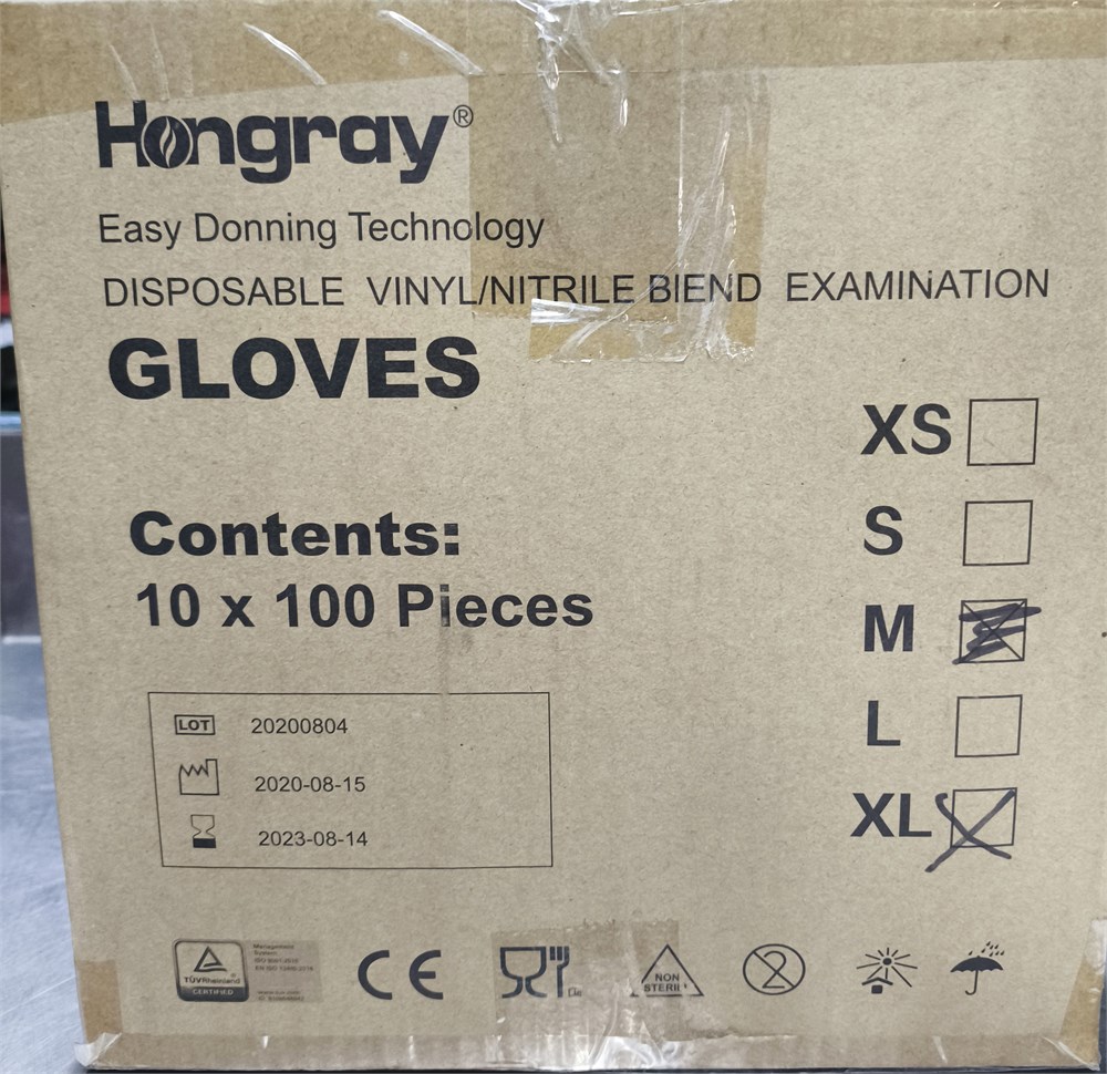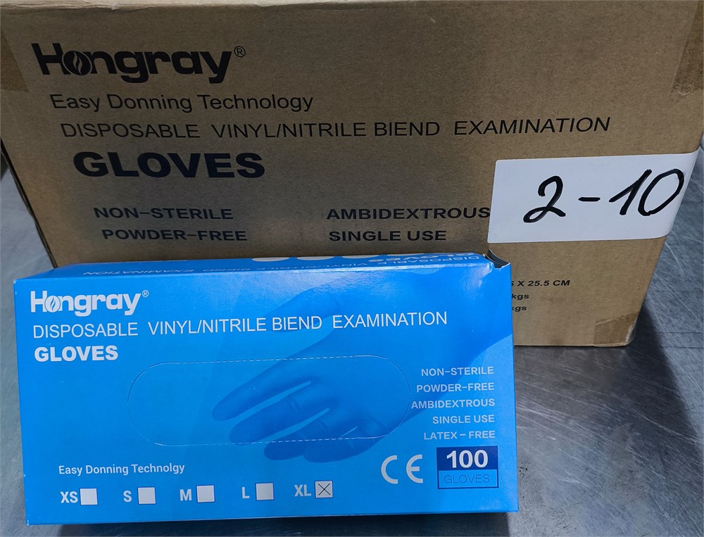 (10) Box of Hongray Disposable Vinyl/Nitrile Blend Examination Gloves.