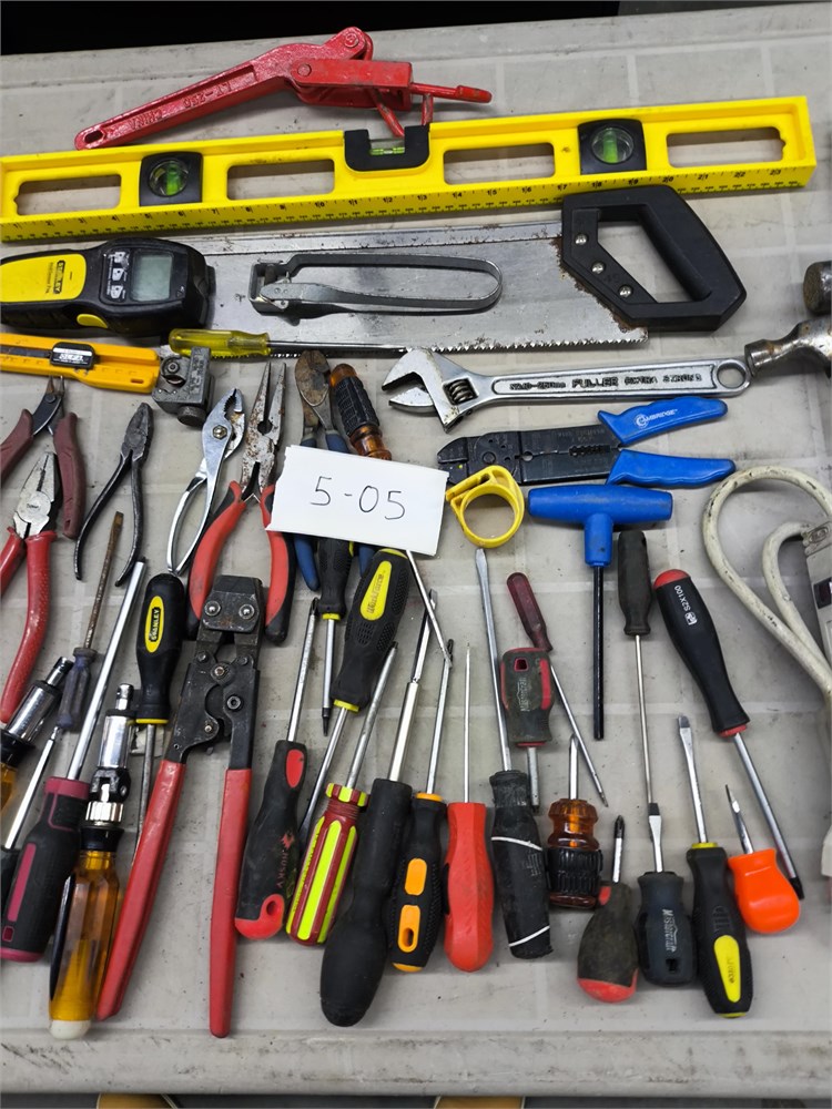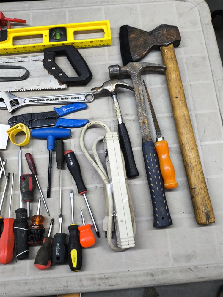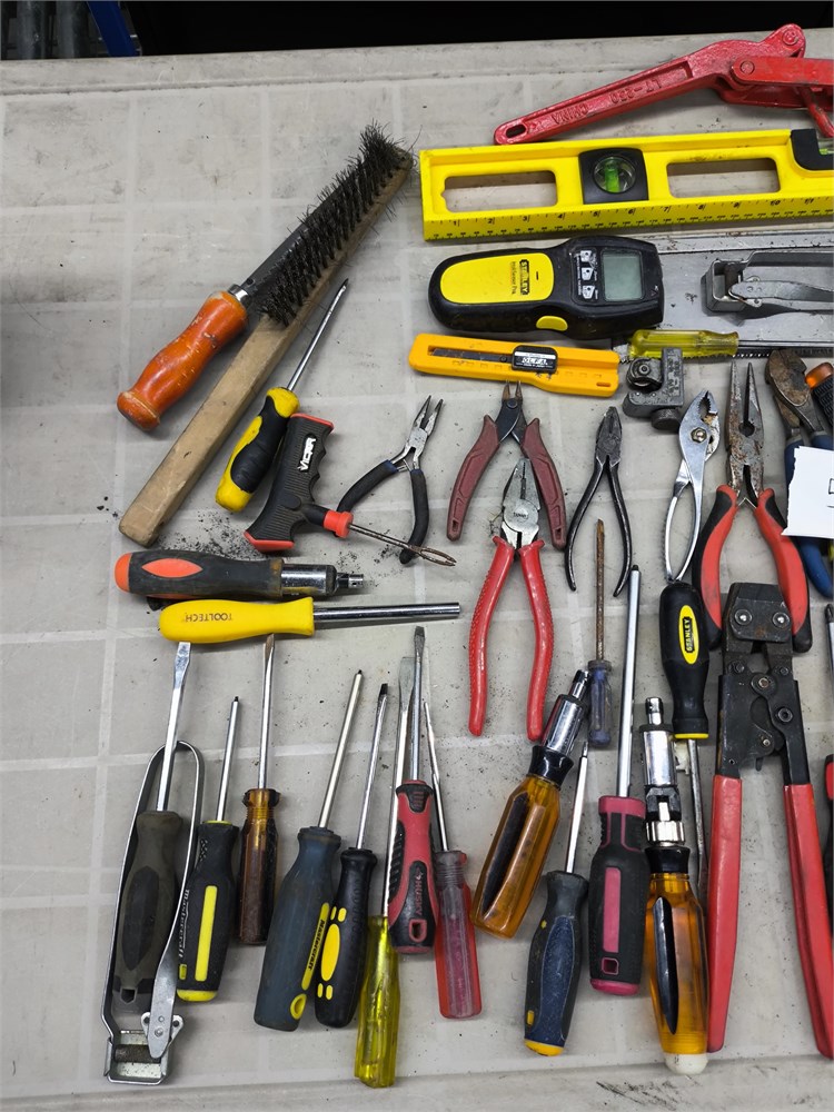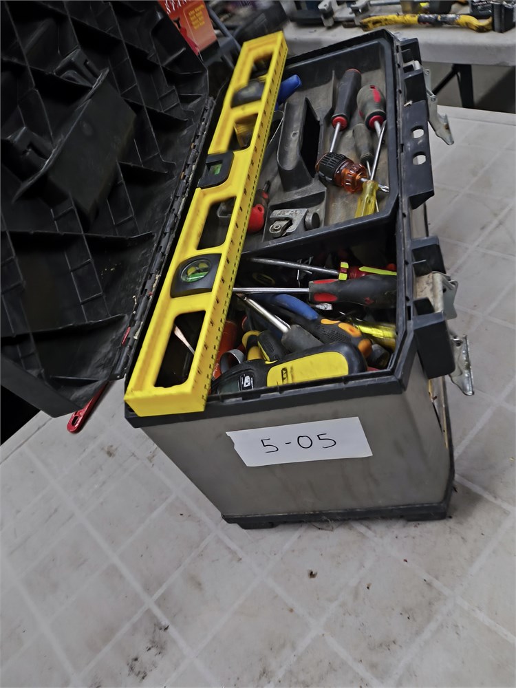 Various Hand tools in a Stanley Tool box, including the Stanley Tools box