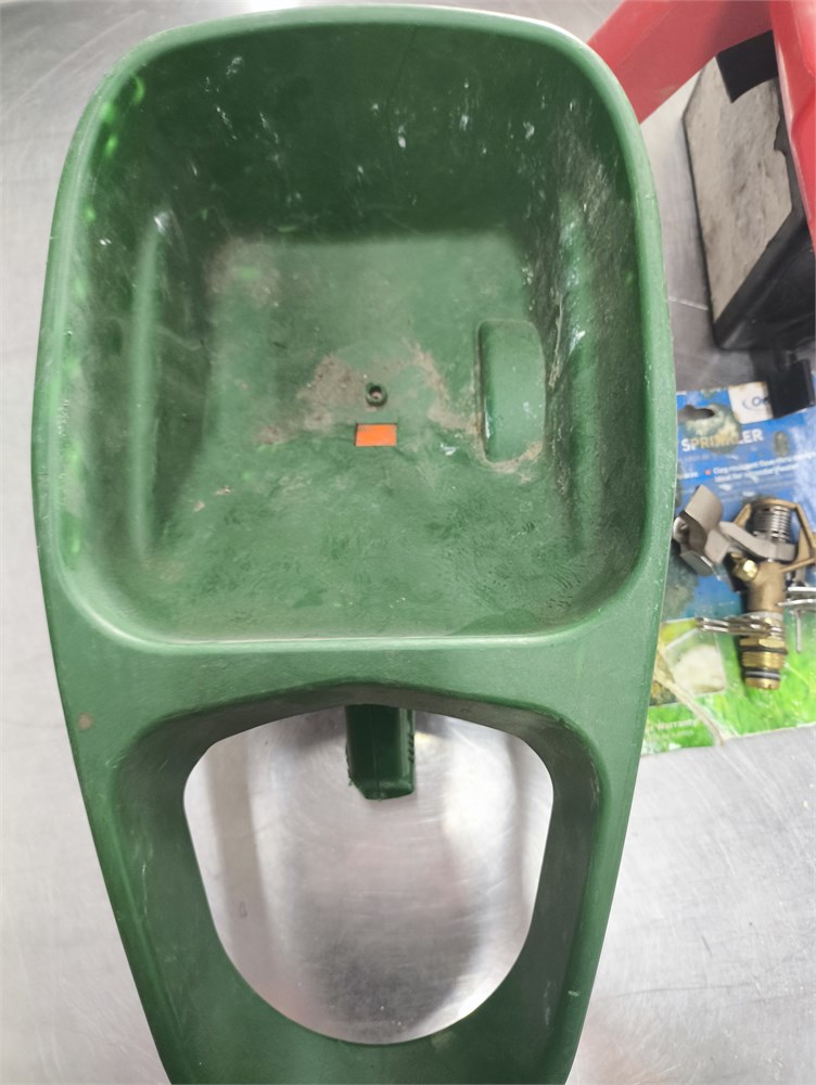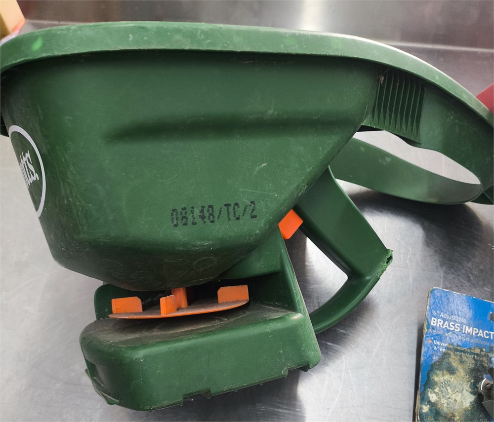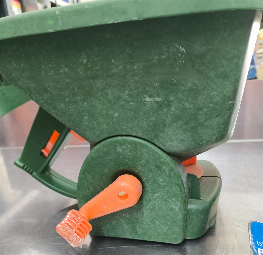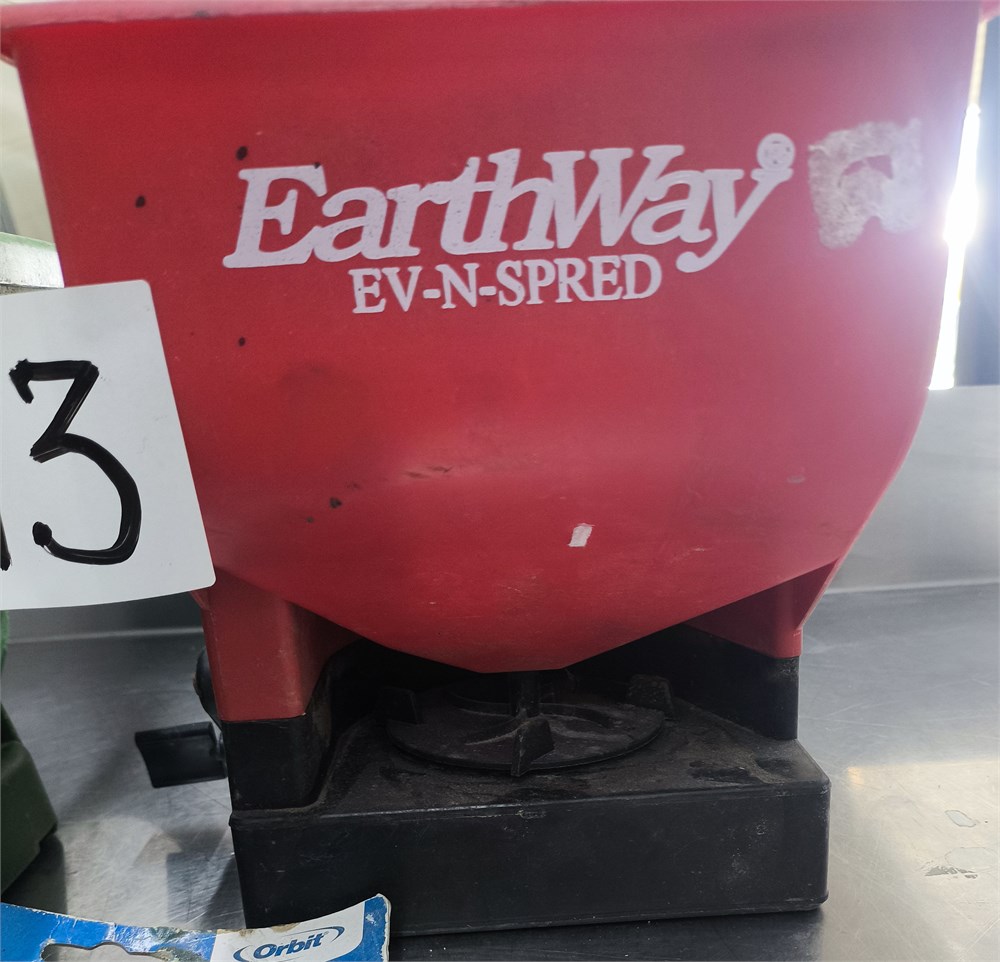 • EarthWay EV-N-SPRED broadcast spreader, which is designed for spreading various materials, including fertilizer, seed, and ice melt.