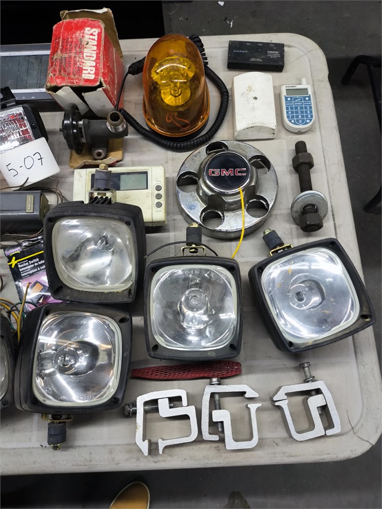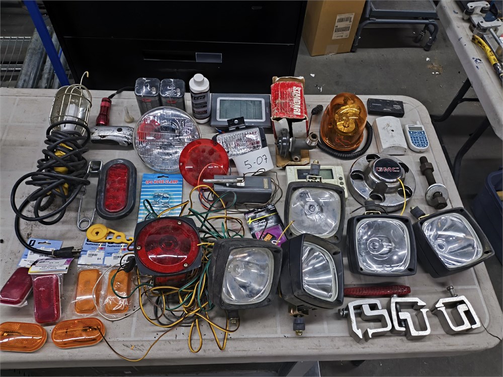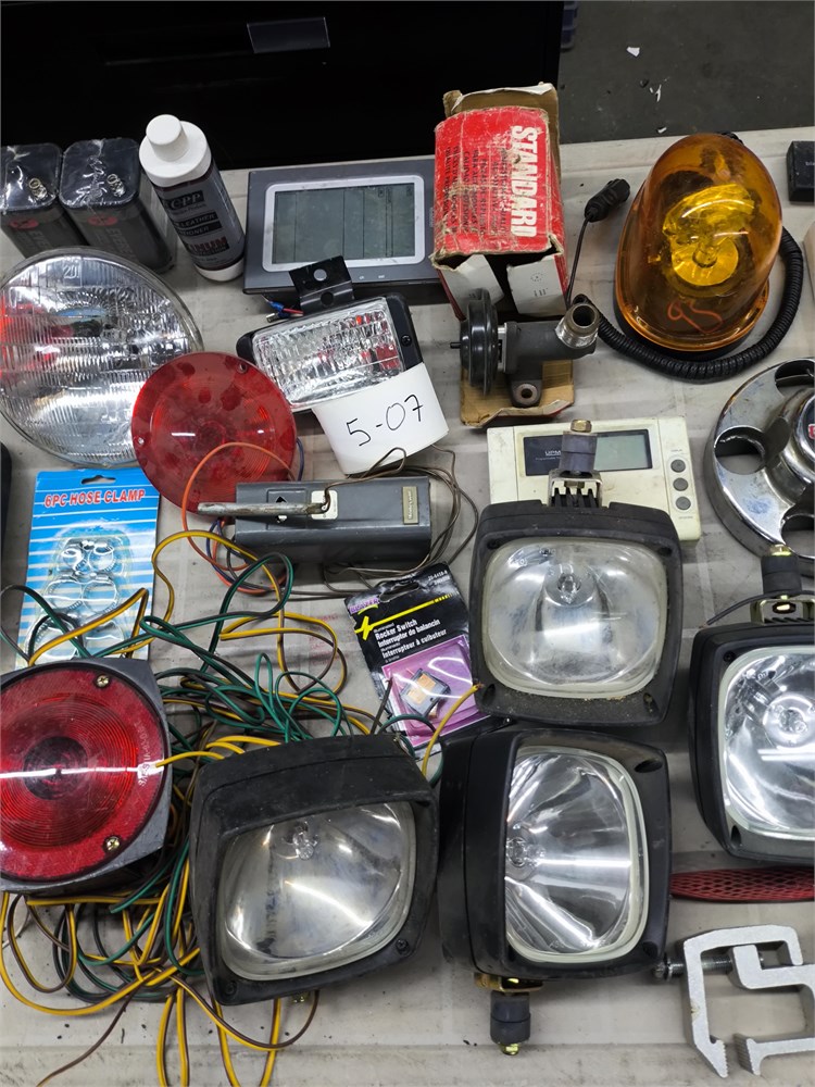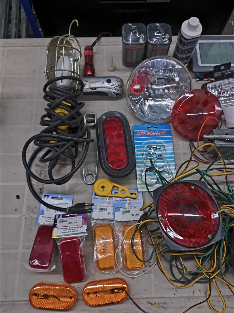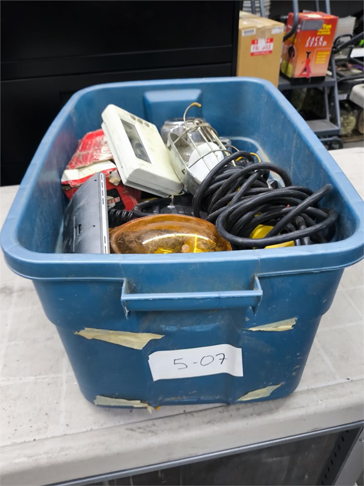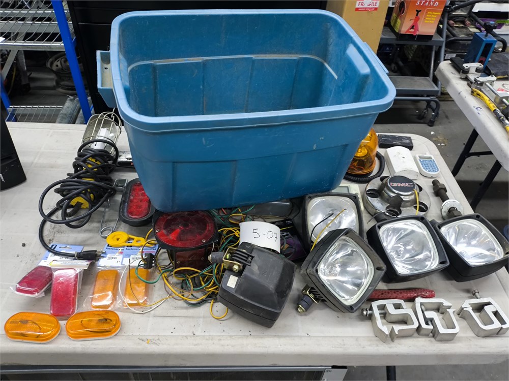 Various Mountable lights with wiring, Batteries, Control Panels, and tub, including the tub