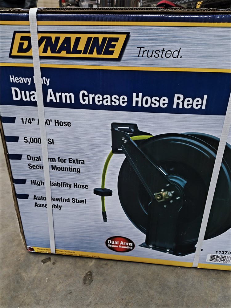 Dynaline Heavy Duty Dual Arm Grease Hose Reel.