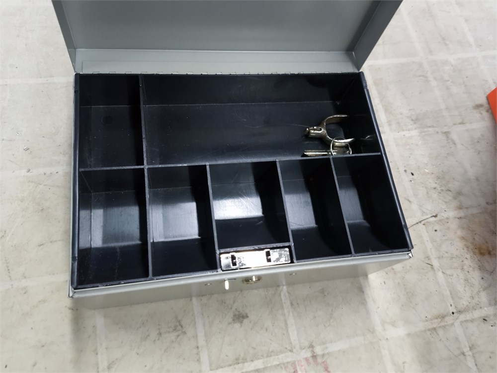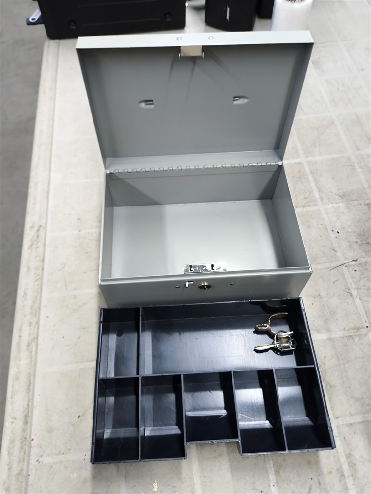• The cash box is made of steel with heavy-duty hinges and comes with one key.