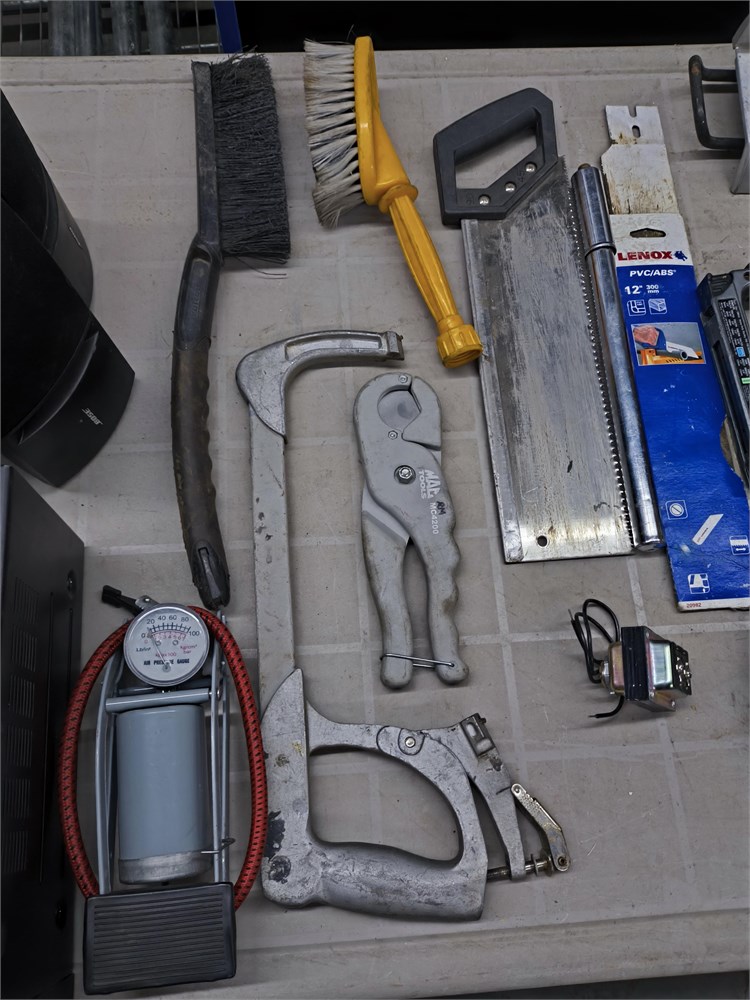 Steel Tape, Hand Saws, Foot air pump, Square clamps, Brushes, Extension cords.