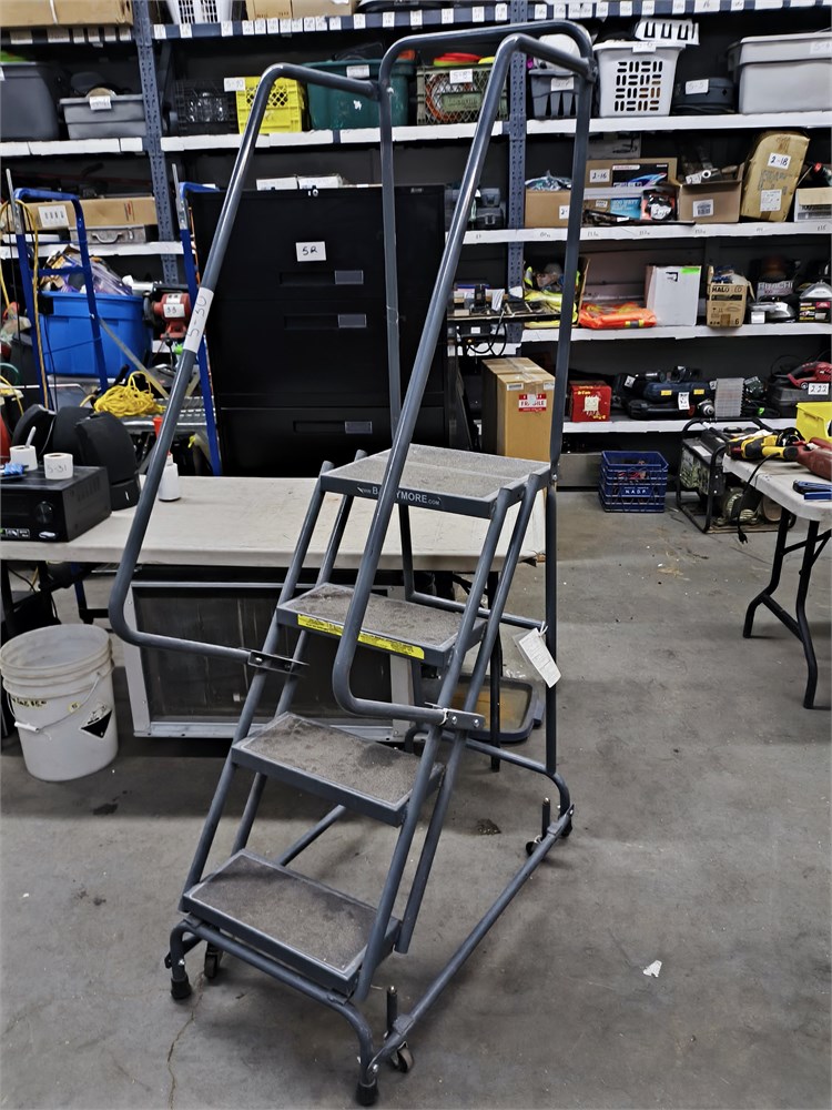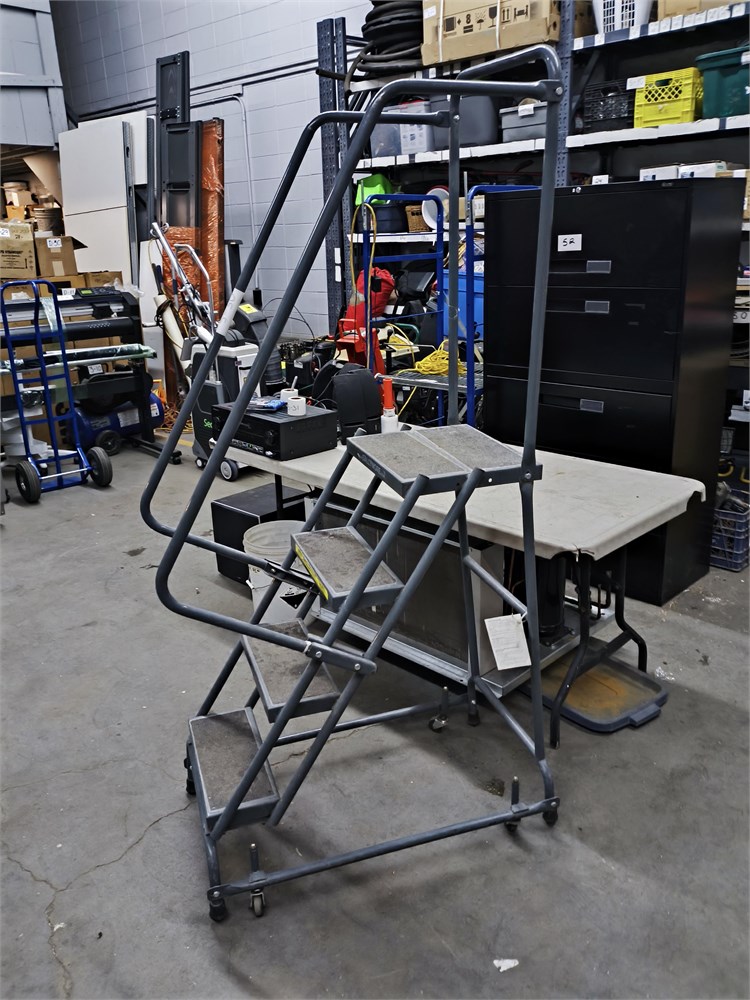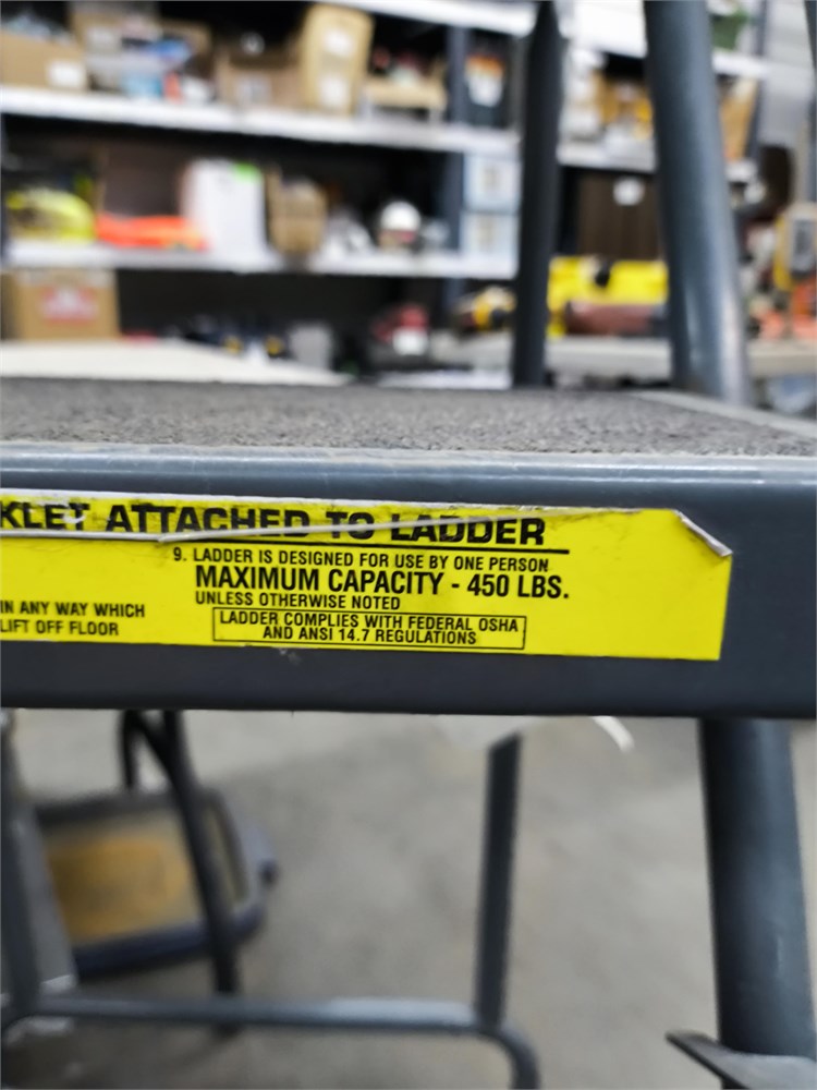 Spring Loaded Caster Ladder, 4 Step, 20" wide base with 14" Deep top step, Perforated Tread, 450Lbs Capacity