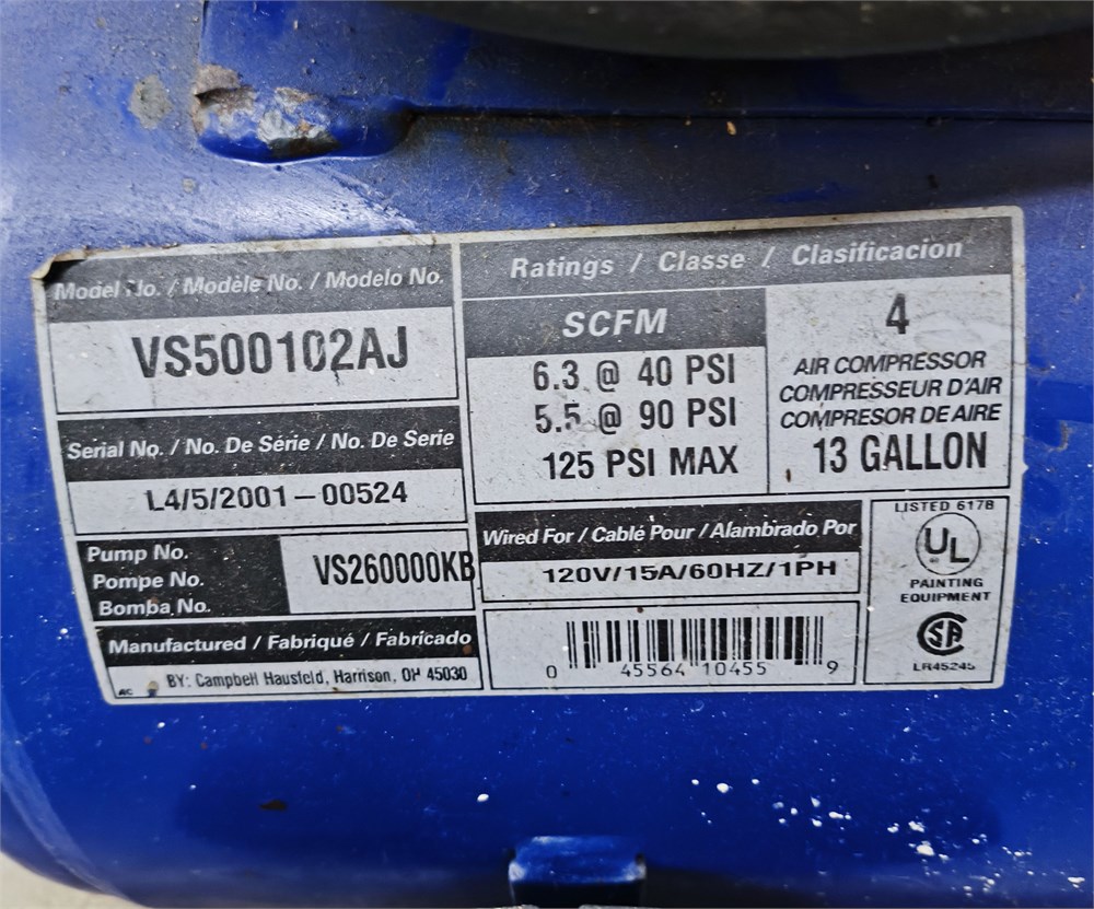 Campbell Hausfeld 13-gallon air compressor 125 Maximum PSI