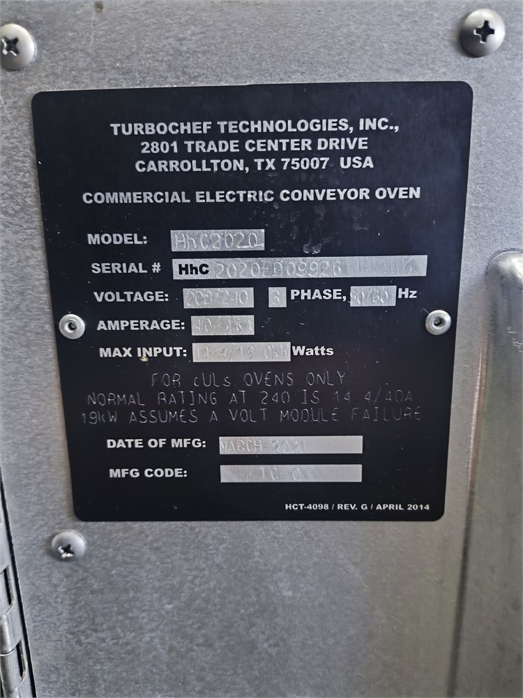 Turbo Chef Conveyor Oven, Model: HHC2020, SN: HHC2020ED09926.