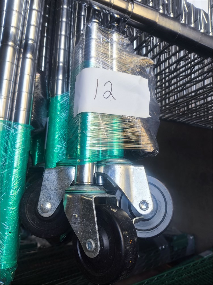 (4) Shelves 24"W x 59"L with (4) Legs 72"T and wheels