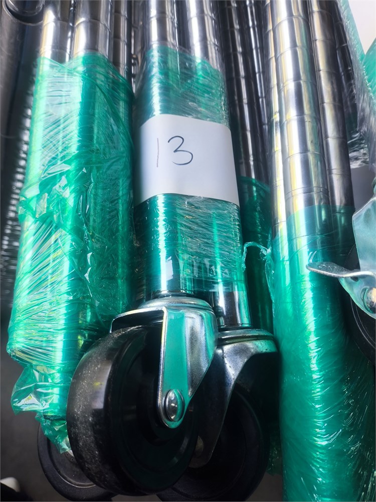 (4) Shelves 24"W x 59"L with (4) Legs 72"T and wheels