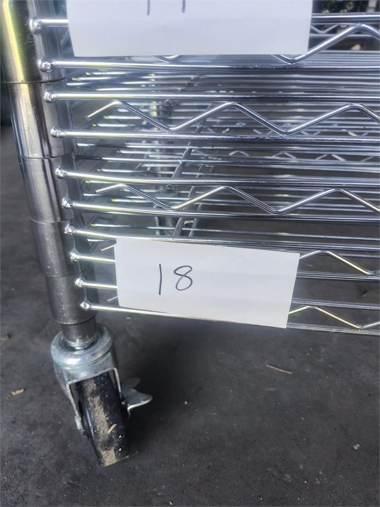 (4) Shelves 24"W x 59"L with (4) Legs 72"T and wheels