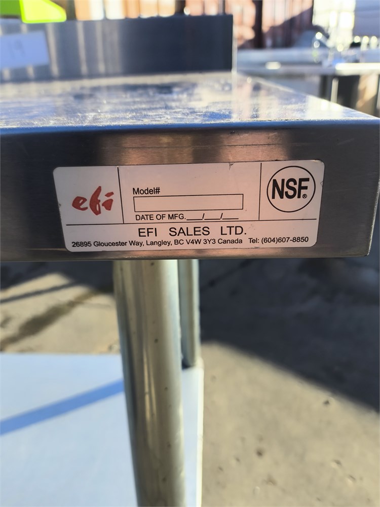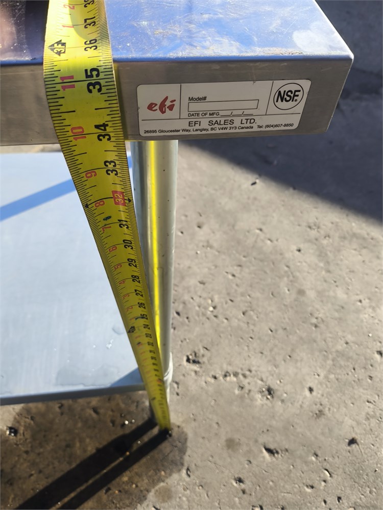 EFI Stainless Steel Table, with Backer and Shelf 30"W x 30"L x 35"T