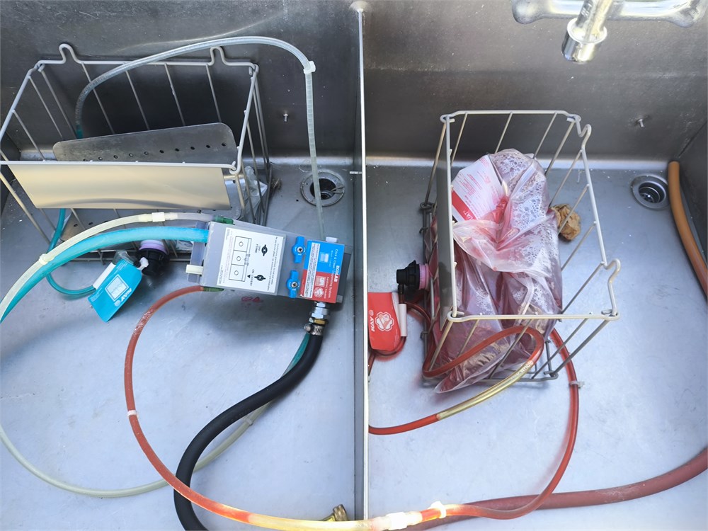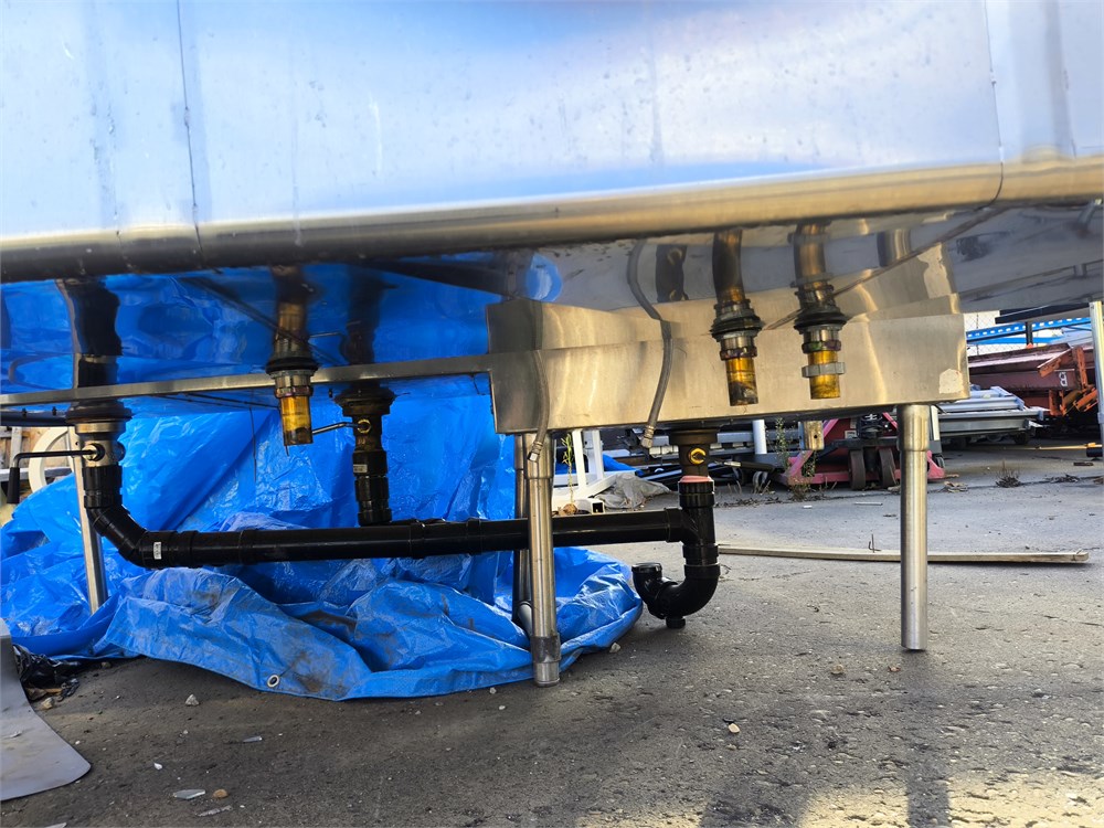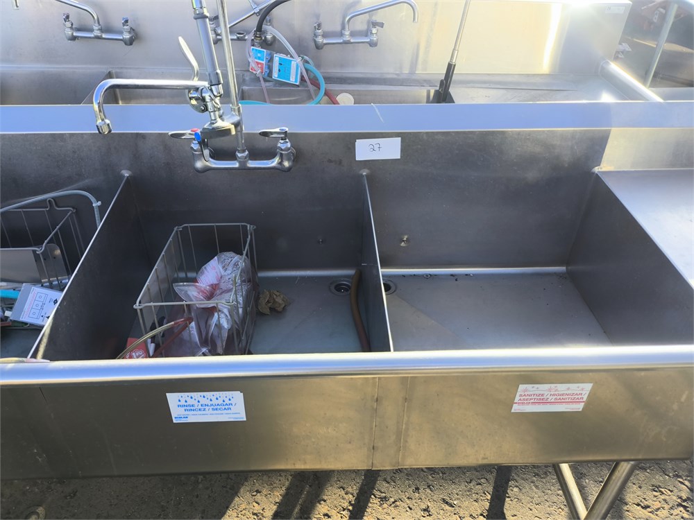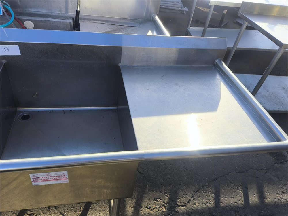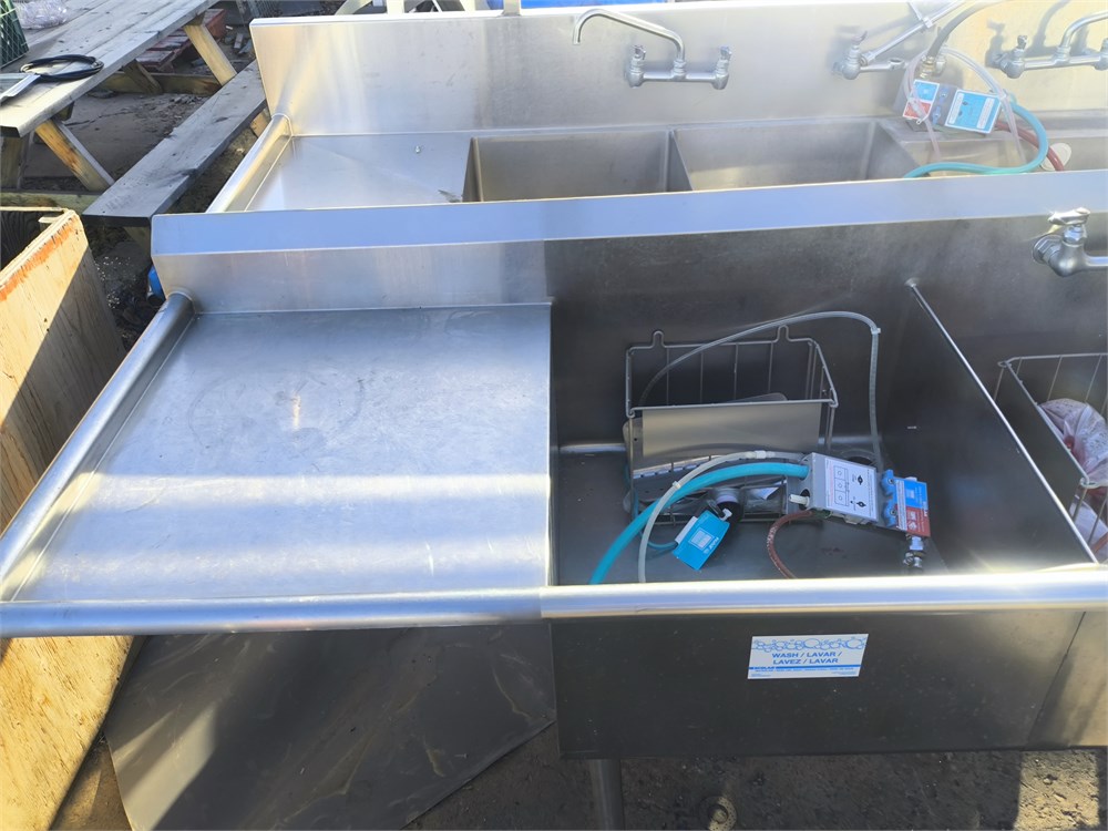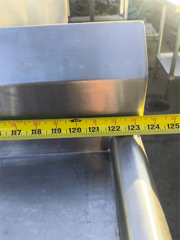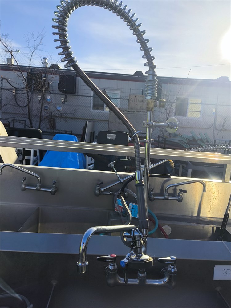 Stainless Steel Sink and Drain Table with Tap, Spray Nozzle and Soap Dispensor. 124"L x 30"W x 36"T