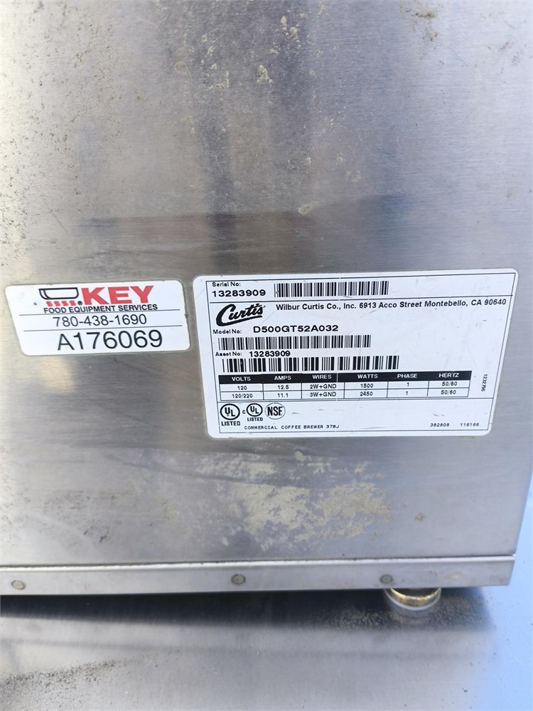 Curtis D500/D60GT Coffee Brewer, Without filter and Pot. Model: D500GT52A032, SN: 13283909 Could Not Test