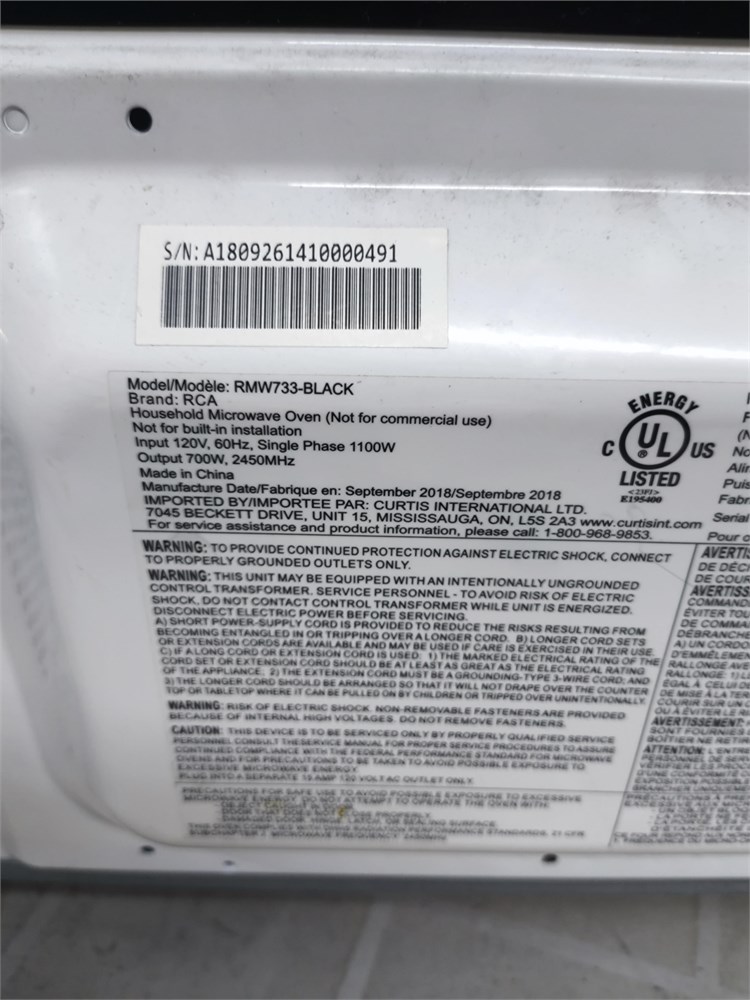 RCA Microwave Model: RMW733-BLACK