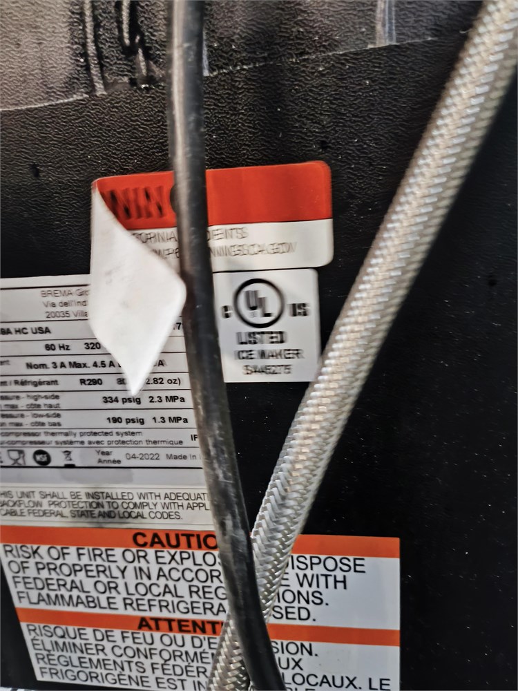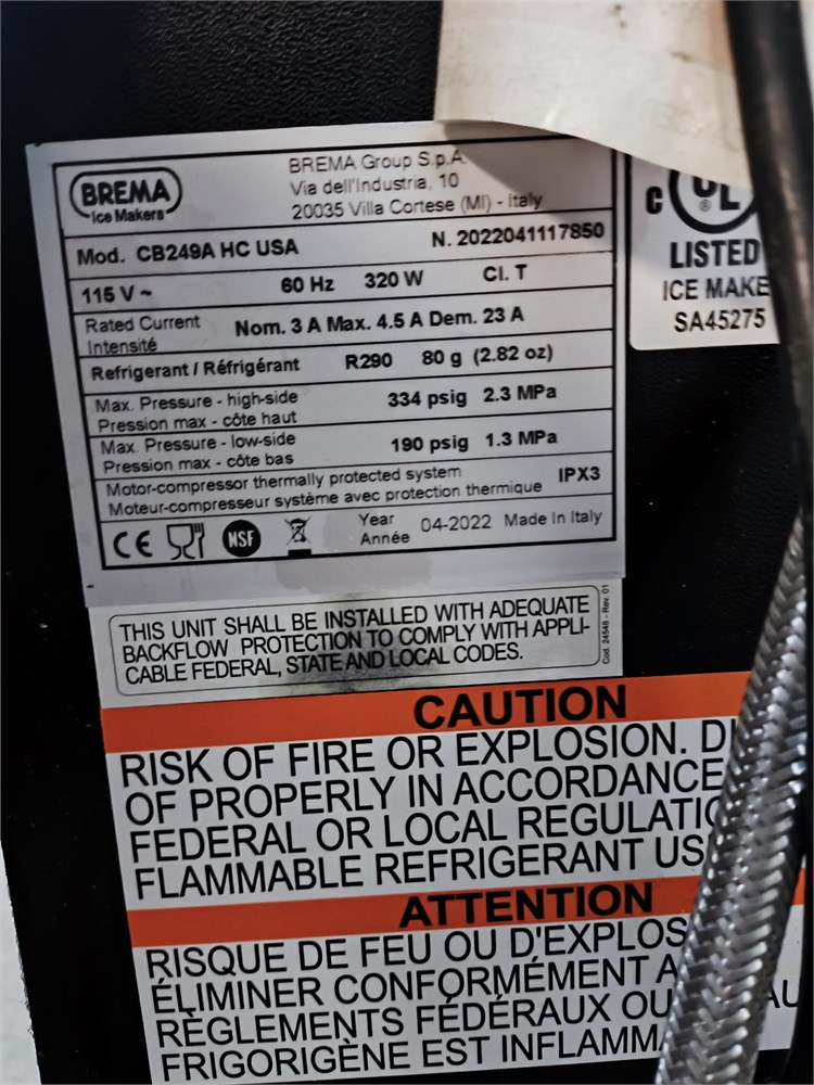 Brema Ice Maker Model: CB249AHCUSA SN: 2022041117850