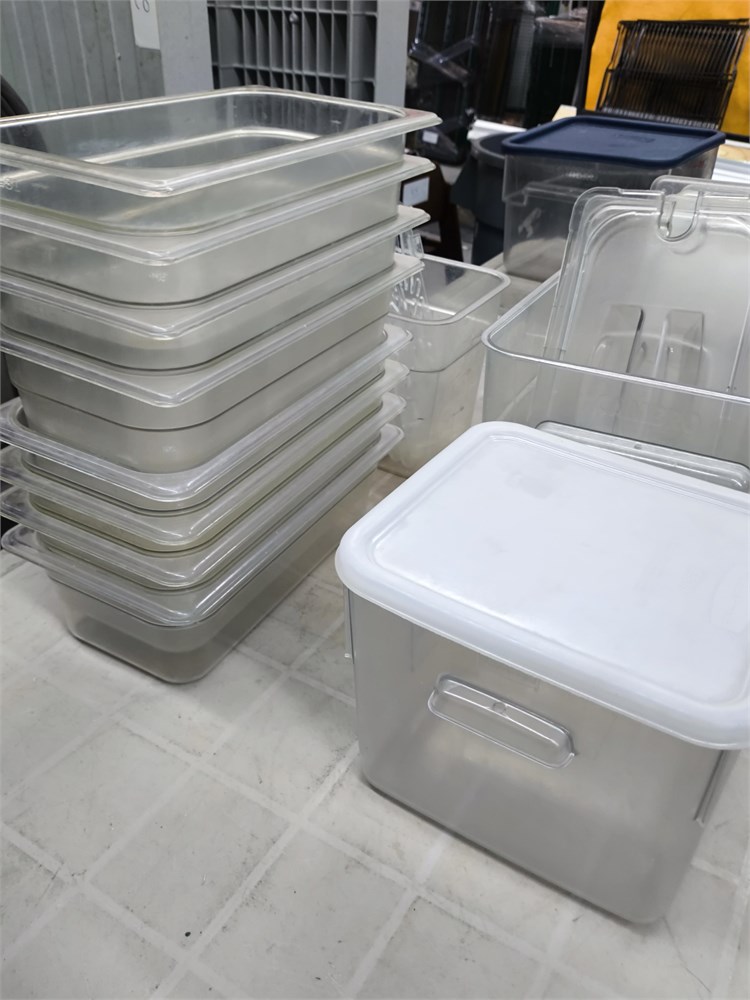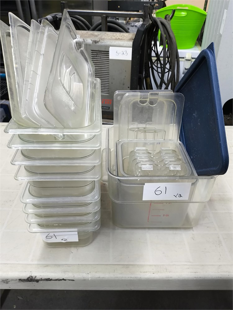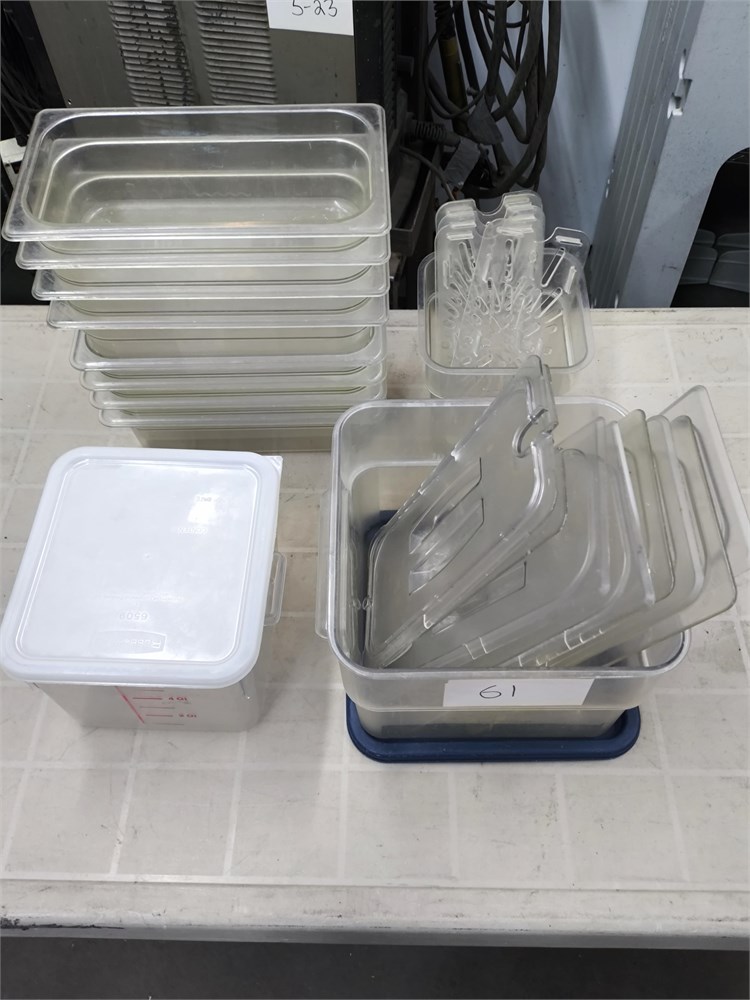 (2) Plastic Square Container and Lid (8) 1/2 Plastic Food Deep Serving Pans