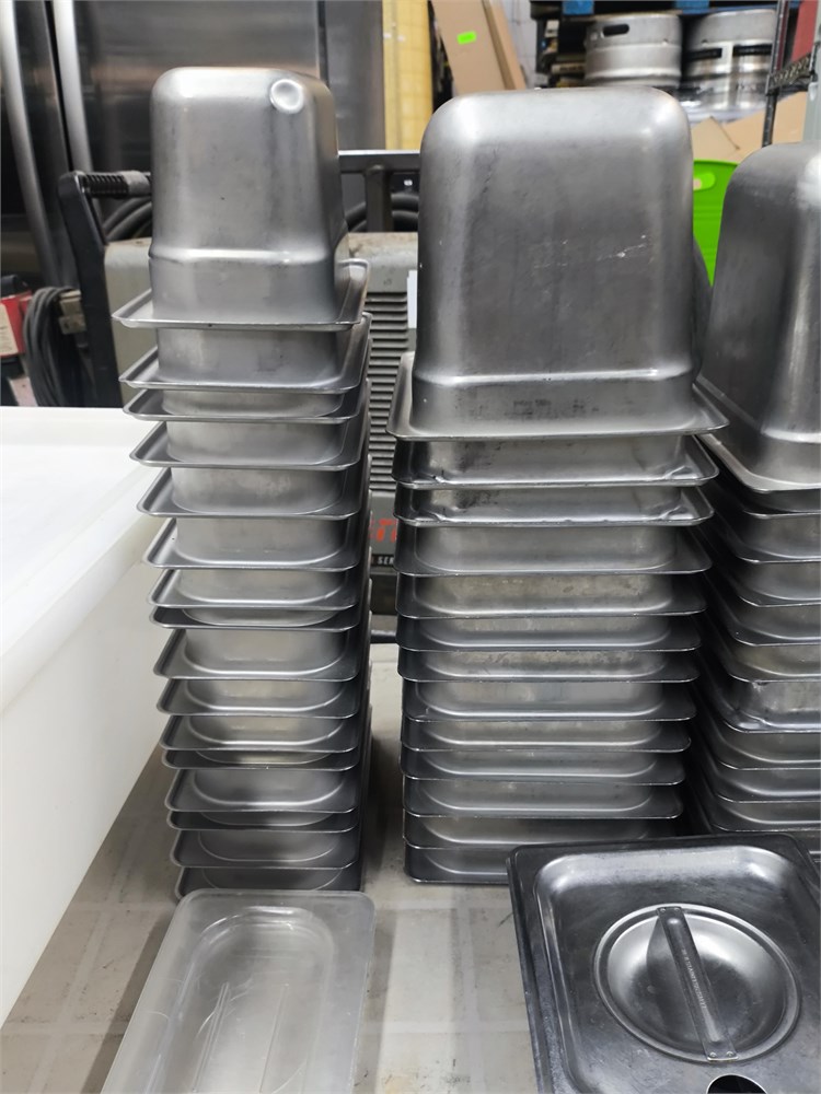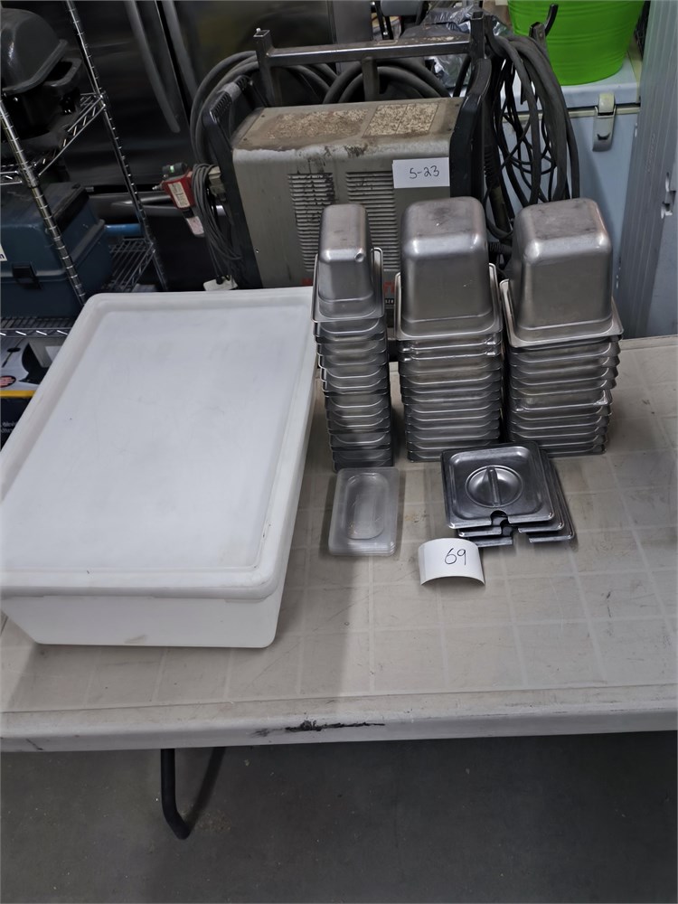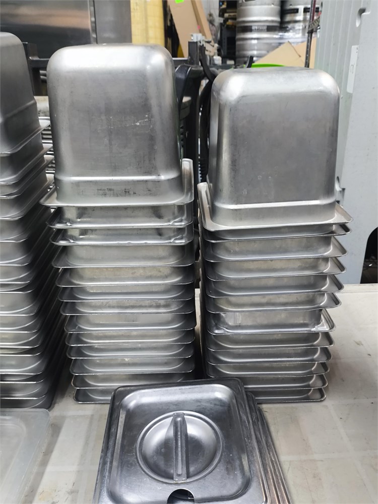 (25) 1/3 Metal Deep Food Storage Containers with Lids, (15) 1/8 Metal Deep Food Storage Containers with Lids