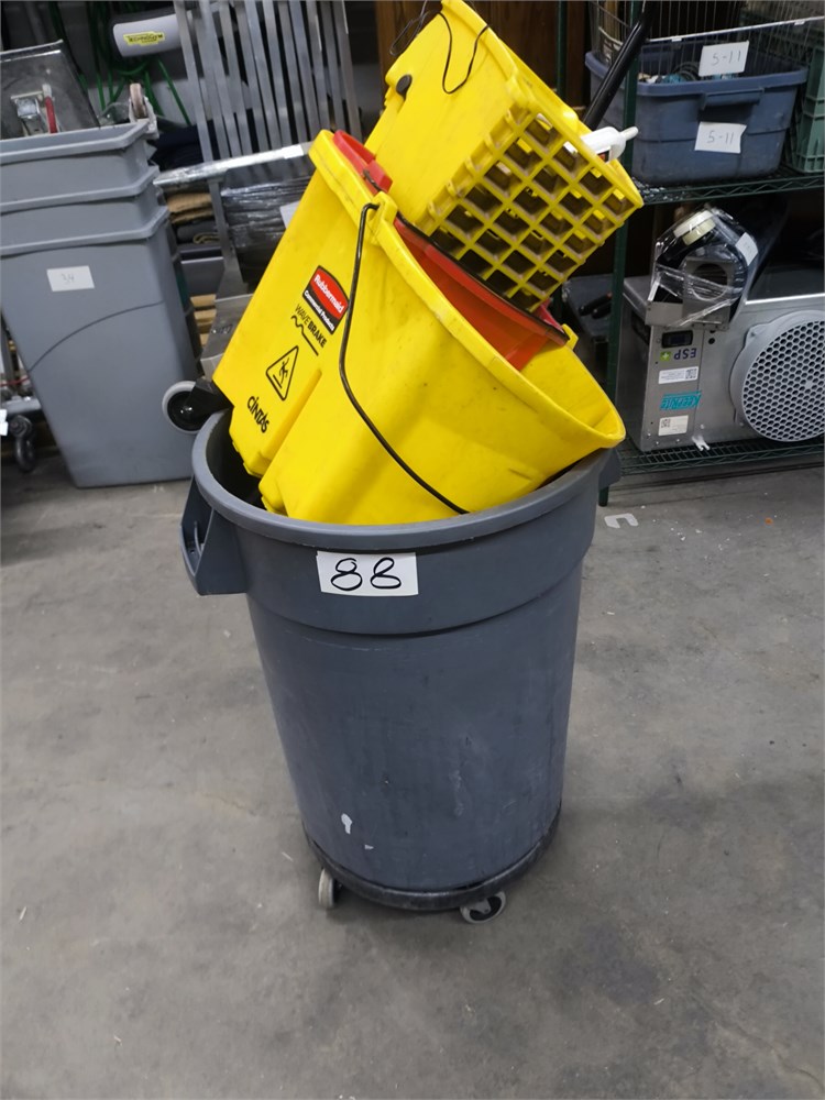 Rubbermaid 32 Gallon Brute Garbage Can with Wheeled Cart, Rubbermaid mop Bucket