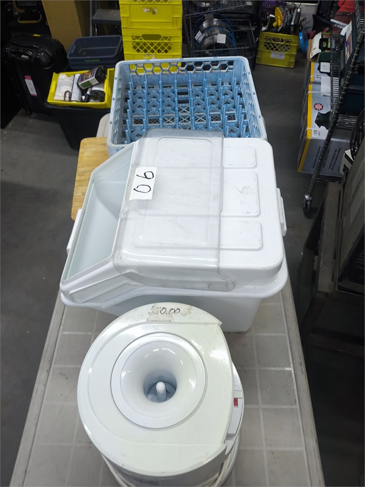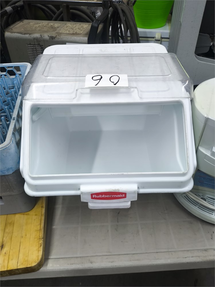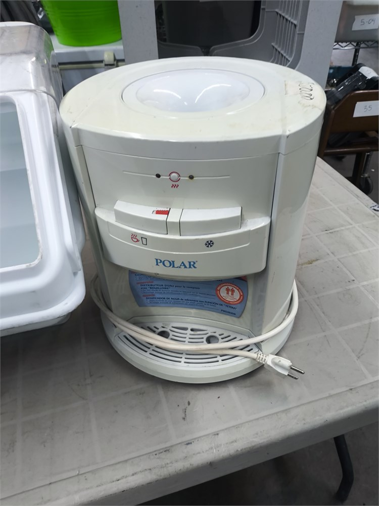 Rubbermaid Dry Goods Storage, (3) Dishwashing racks, (1) Butcher Block, Polar Water Dispenser Model: PWD2635W