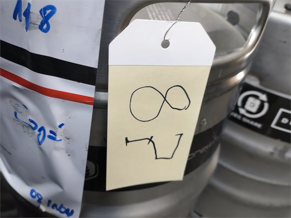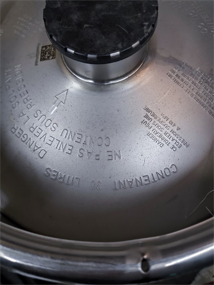 30L Keg with Contents labeled as ""Evil Corporation Brewing Sour Caga" see tag for more details
