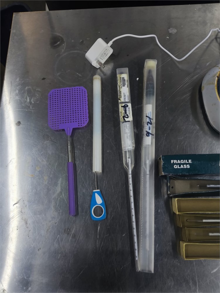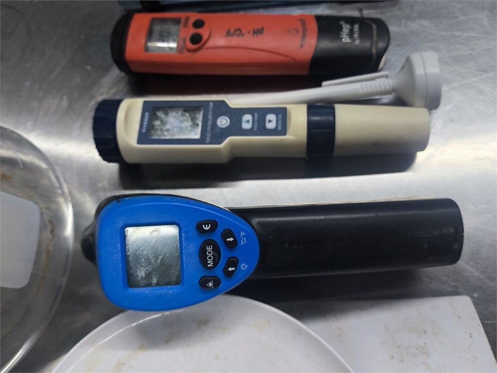 (1) Precision Hydrometer, (5) Thermometers, (1) Lab Fish Magnetic Stirrer, (1) Accu Chef Scale