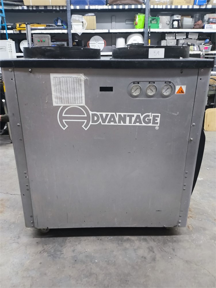 Advantage Maximum Portable Chiller Model: BCD-10A, Cooling capacity @ 25� F: 62,412 BTU an hour or @ 50� F: 117,600 BTU an hour, 25 Gallon Reservoir, CFM: 10,000, Electrical: 230 volts, 60 hertz, 3 phase