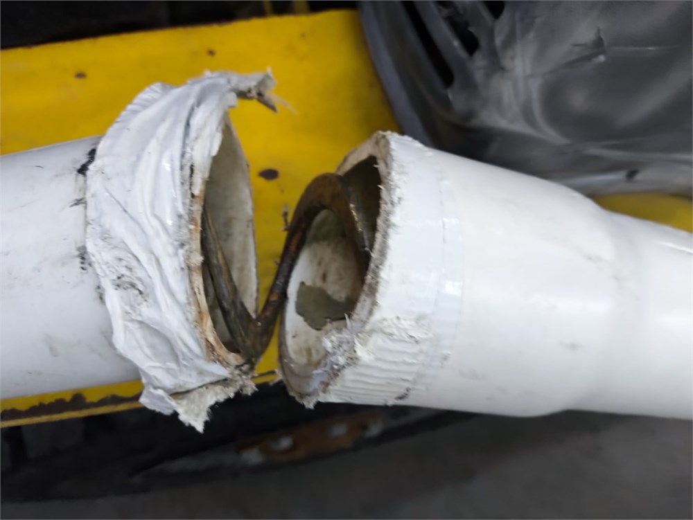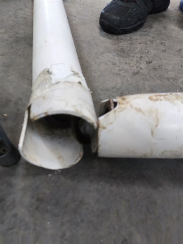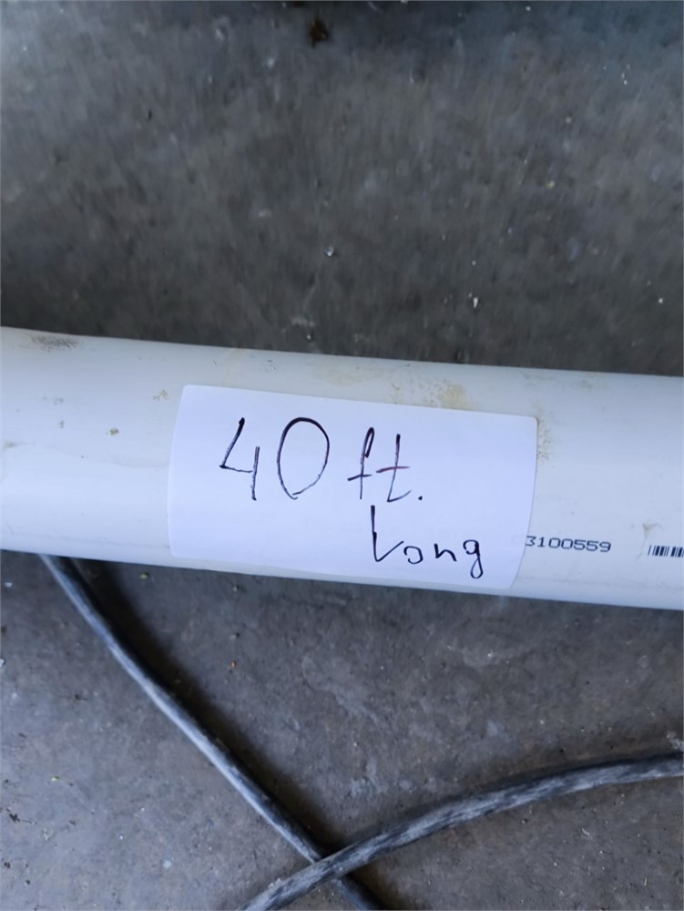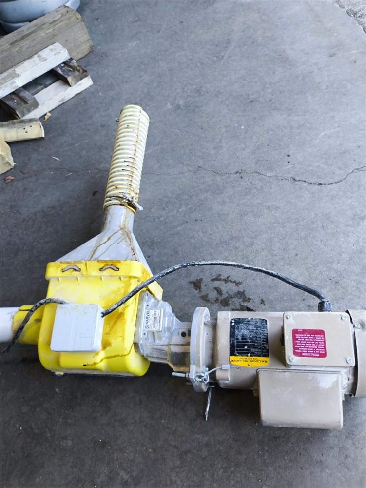 Flexi pipe Auger, Roughly 40' Pipe. Roxell Catcher, Baldor Farm Duty .75HP Motor, Varvel Gear Box. The PVC piping was cut for transport.