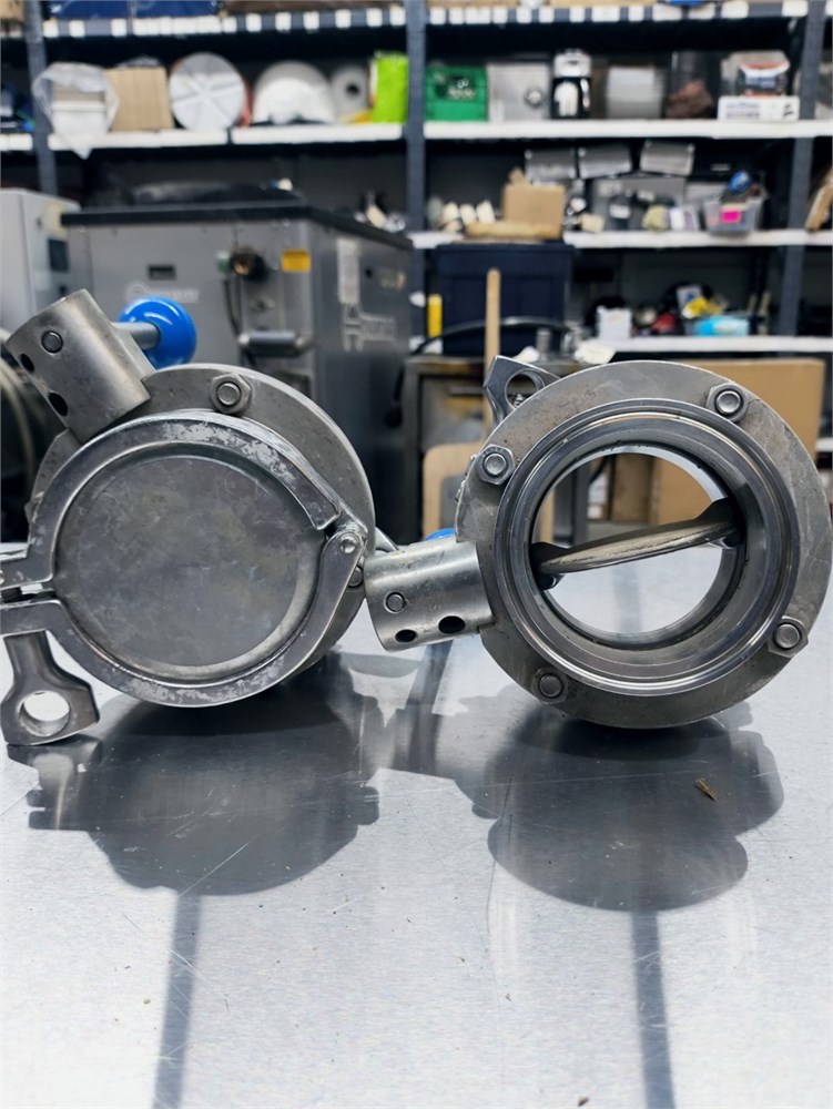 (2) Stainless Steel Butterfly valves, Cleaning Ball, and Stainless Steel Elbow Joint