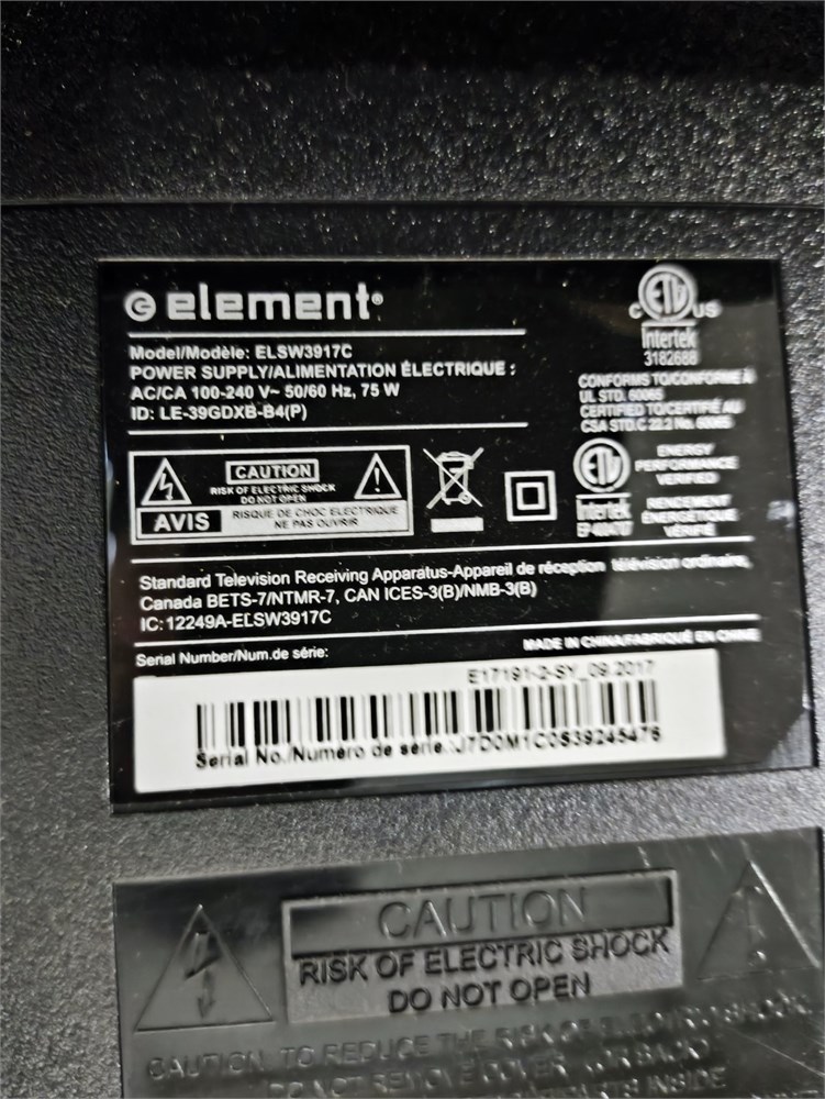 Element Television Model: ELSW3917C, With Remote and wall mount