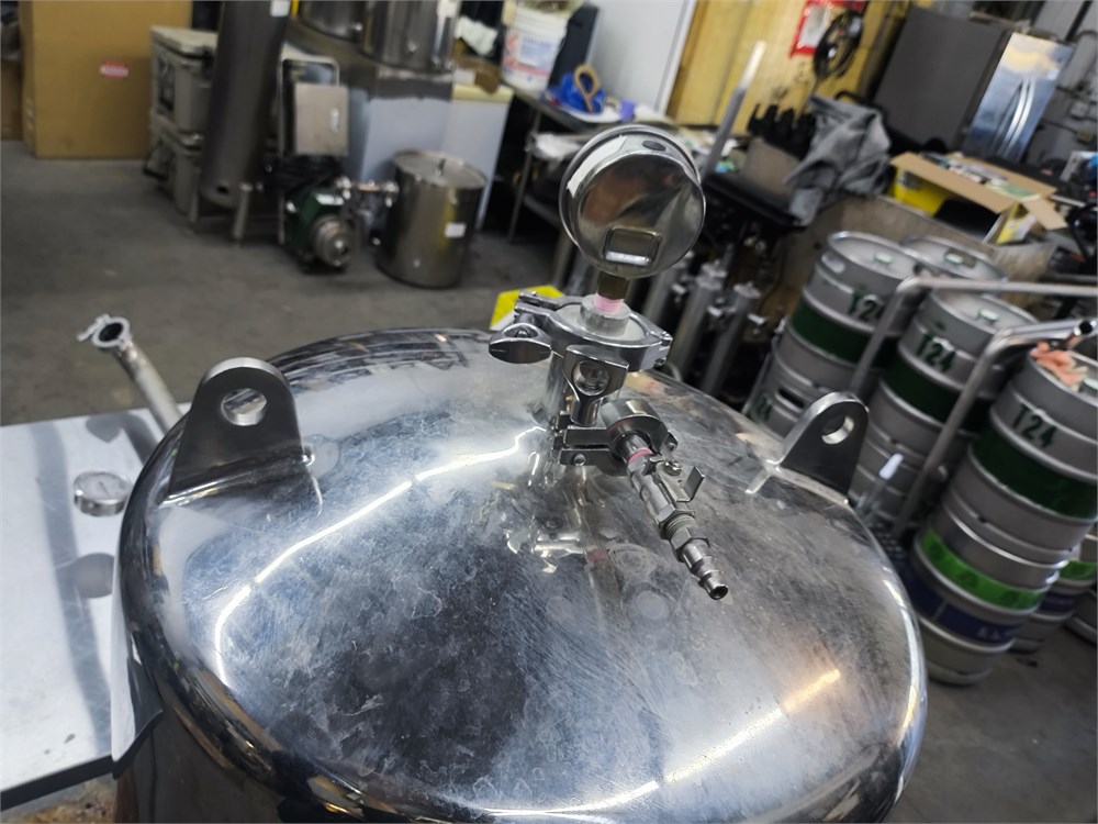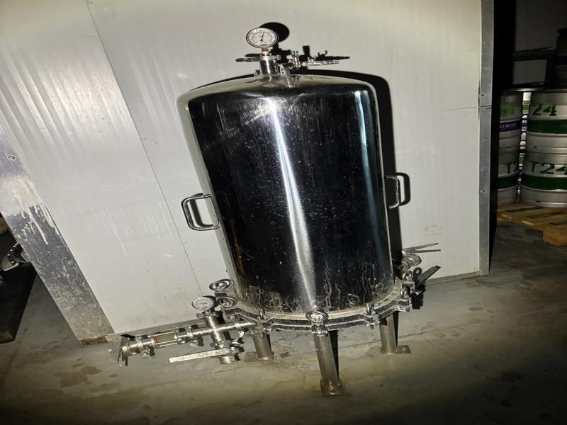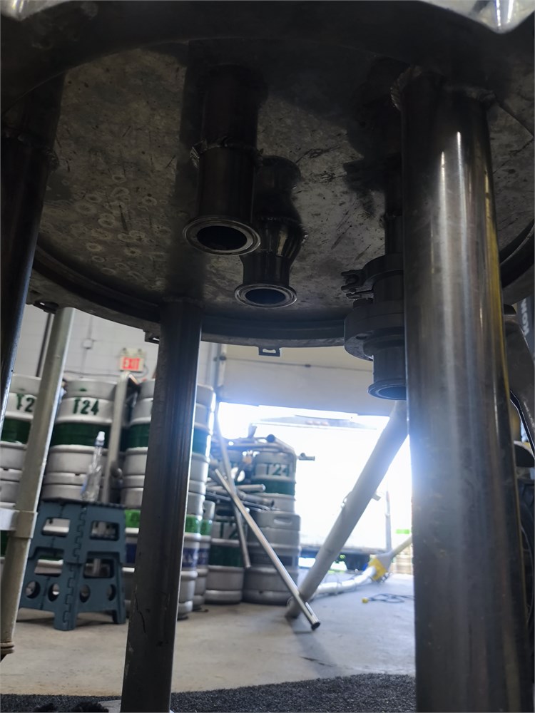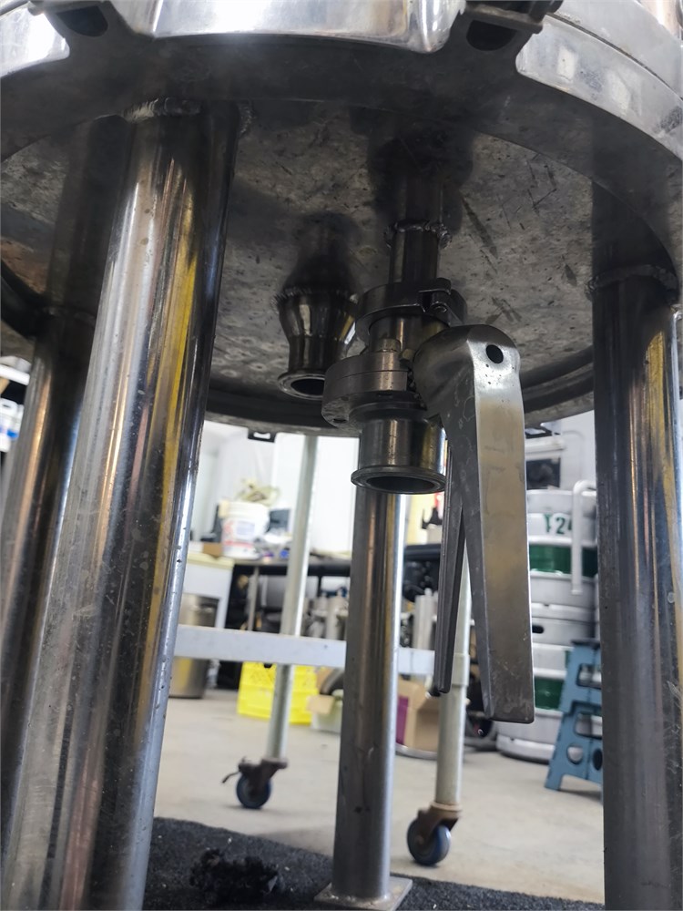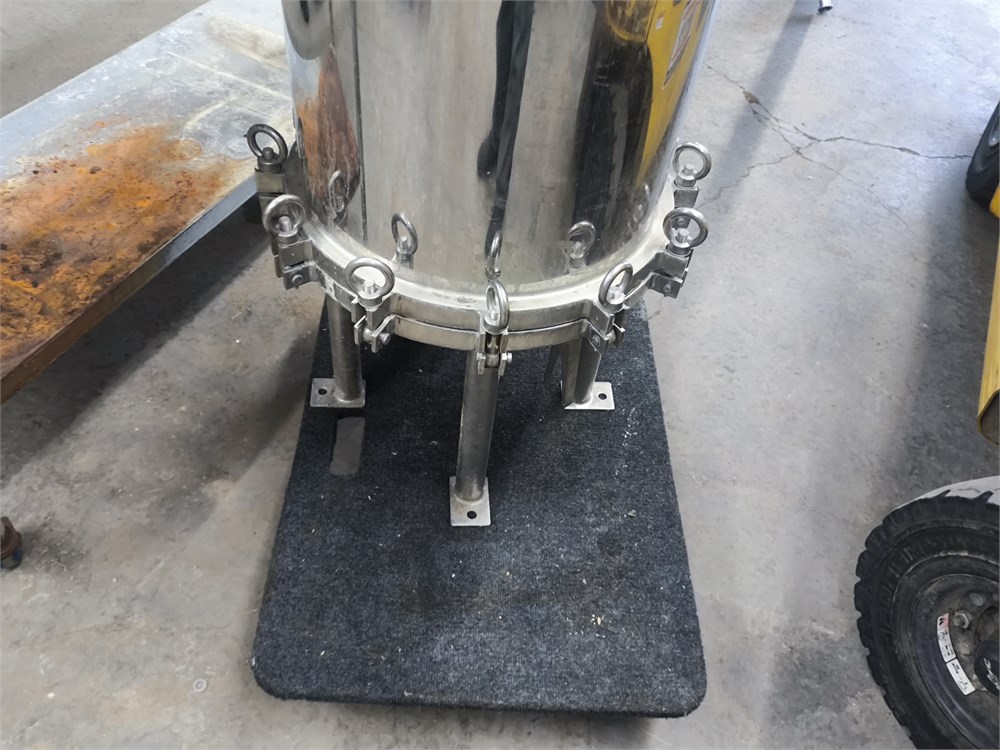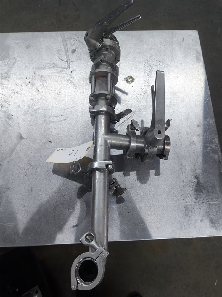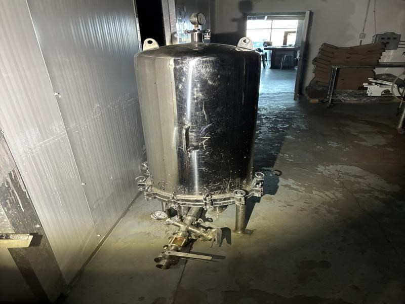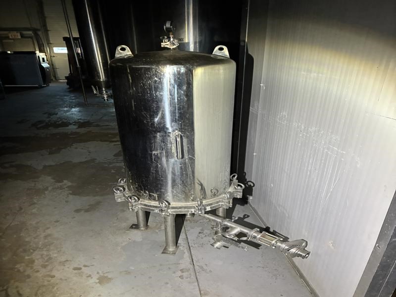 Stainless Steel Filtering tank with Bottom swing bolts, and (2) Stainless Steel Pipes with flow glass and butterfly valves