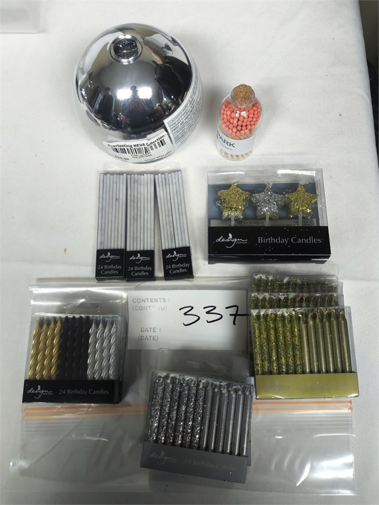(12) Candles, Neva Glass Vase, Love Branded Matches