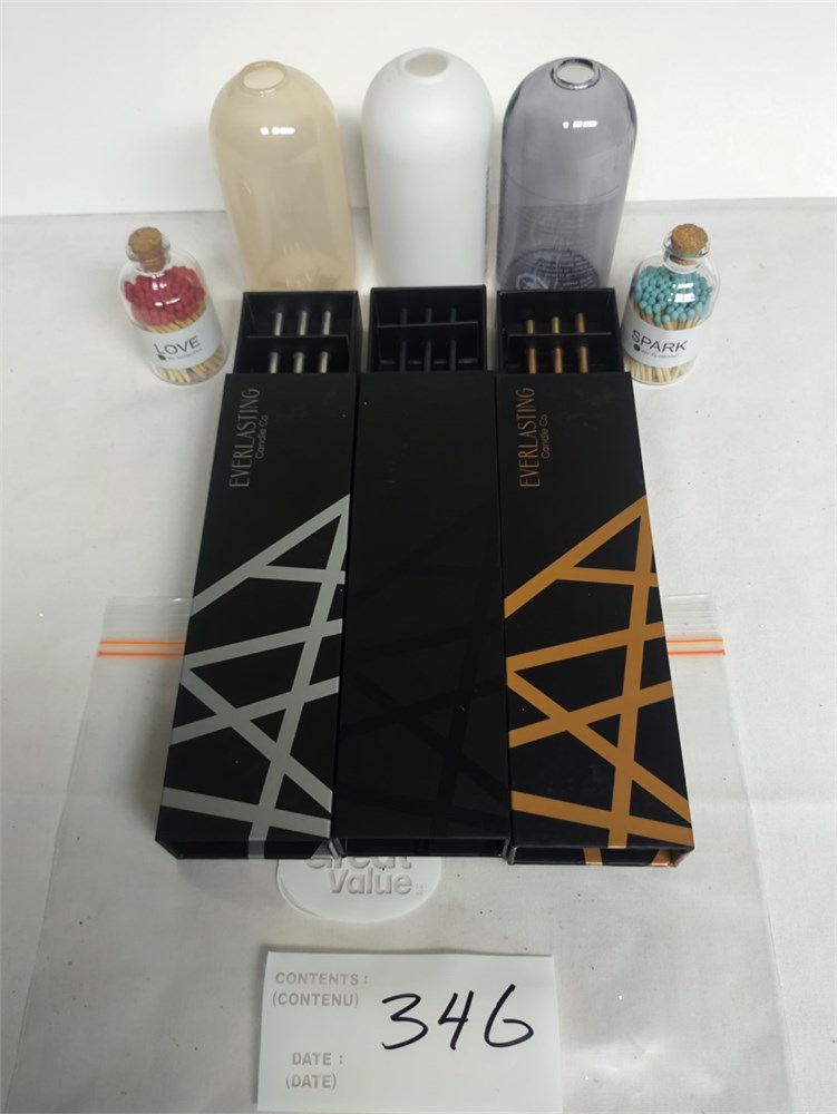 (3) Packages of 3 Everlasting Candles Steel Oil Candle, (3) Prestine Oil Vase