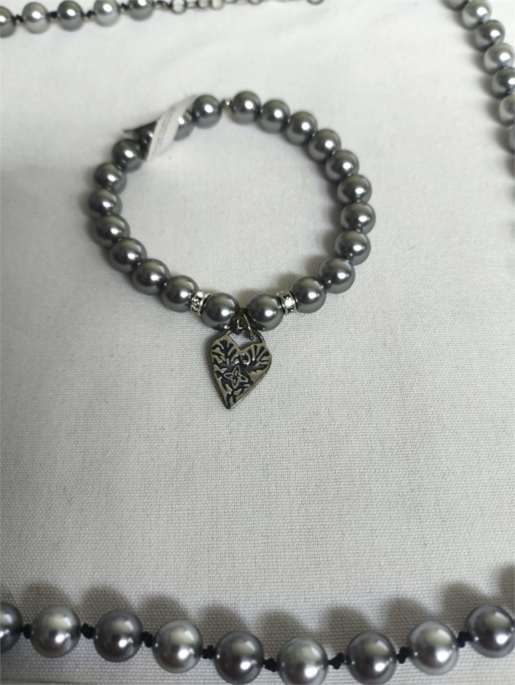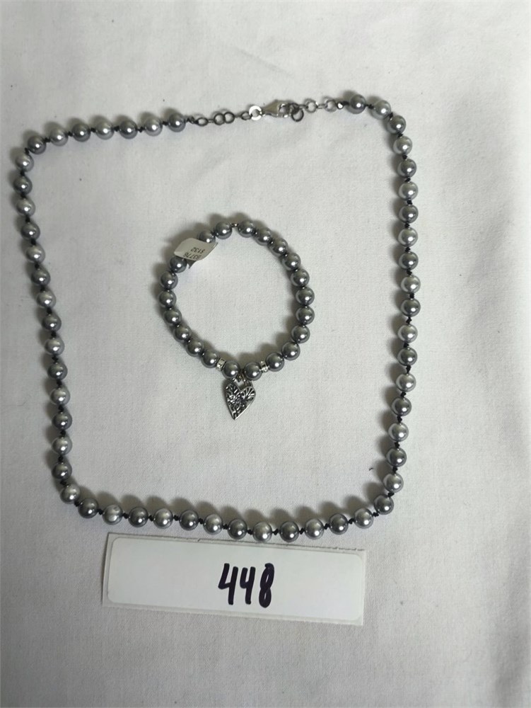 Austrian Pearl Silk Sterling Silver Necklace and Bracelet