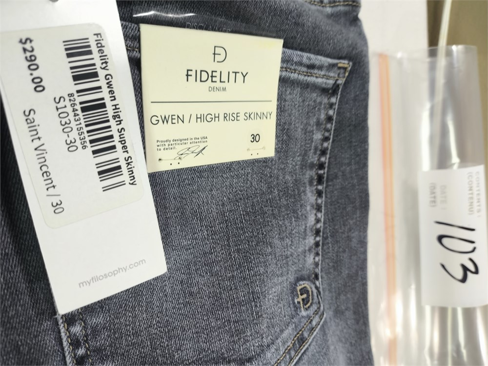| Fidelity Denim Gwen High Rise Skinny, Size 30 |