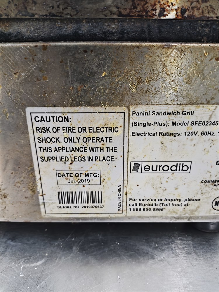 Commercial panini sandwich grill manufactured by Eurodib.