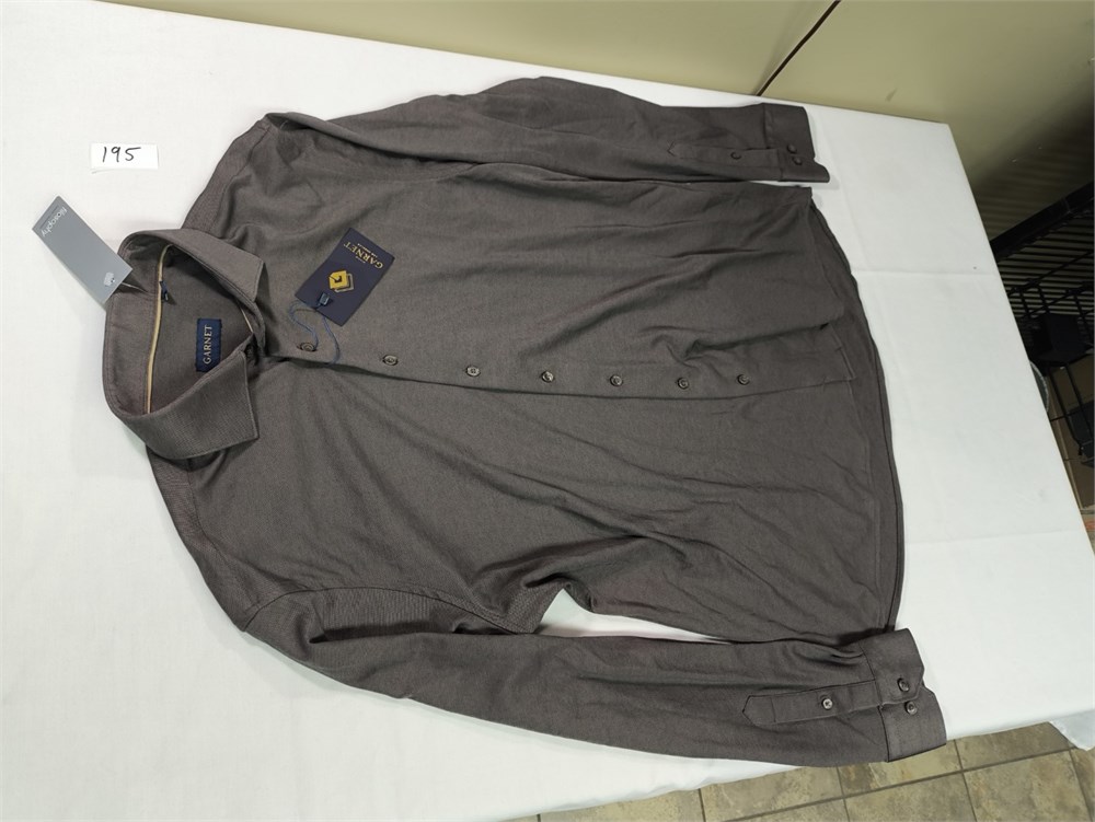 Garnet Italian Collar Jersey Long Sleeve Button Up Shirt, Size L