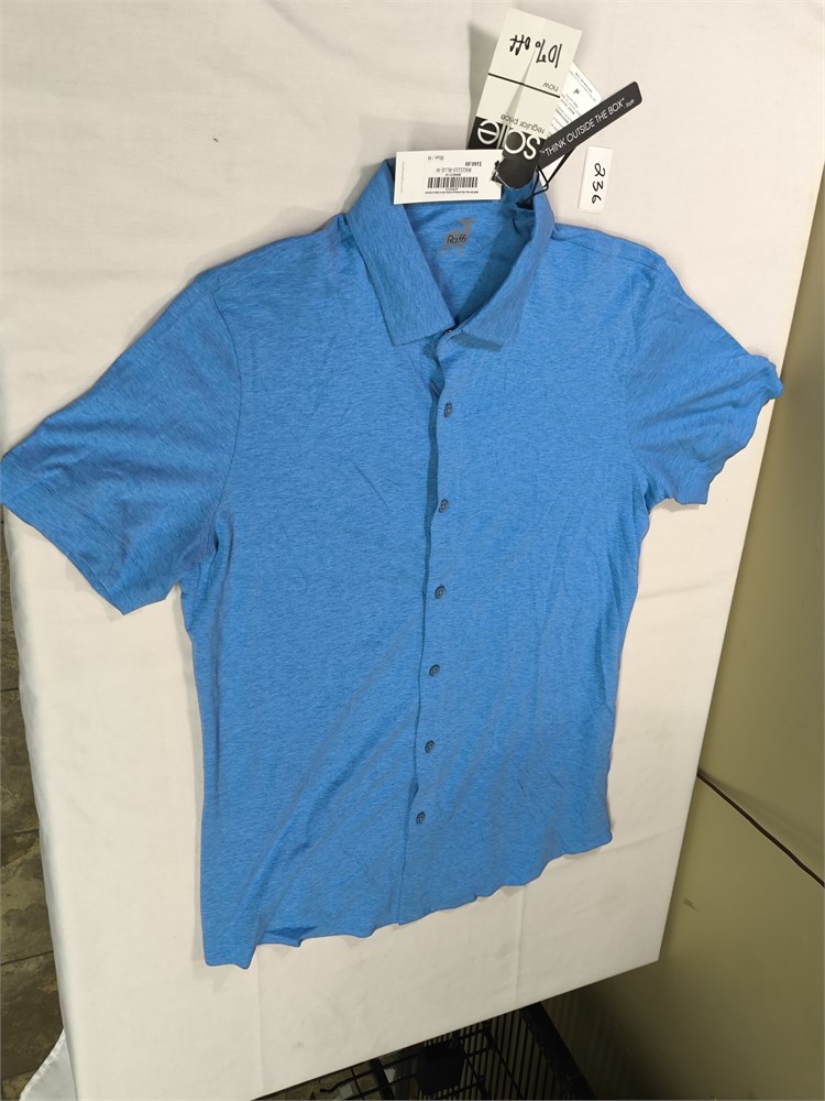 Raffi All Year Round Aqua Cotton Short Sleeve Shirt Button up, Size M