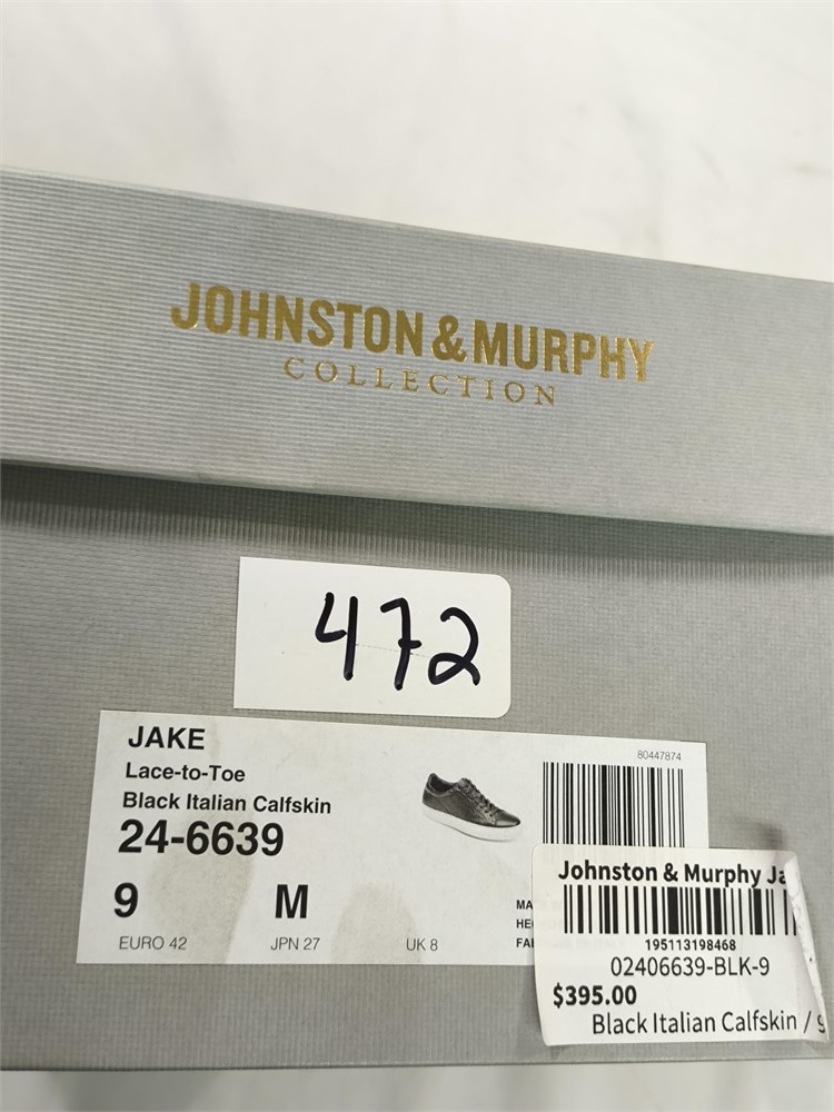 Johnston & Murphy Jake Lace-to-Toe Black Italian Calfskin Size 42 Euro
